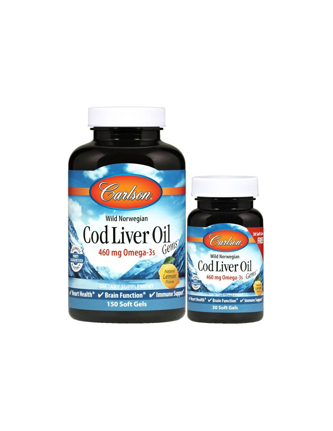 Wild Norwegian Cod Liver Oil Gems, 460mg - 150 + 30 softgels | Carlson Labs