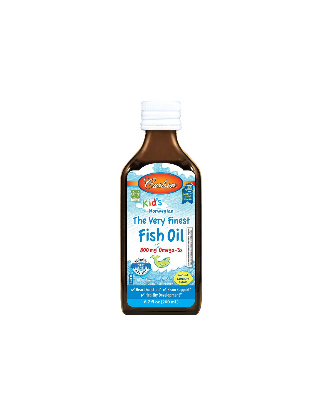 Carlson Labs Kid's The Very Finest Fish Oil (800 mg Omega-3 pro ½ Teelöffel) bietet eine hochwirksame, kinderfreundliche Omega-3-Formel aus norwegischem Kaltwasserfisch. Jede 2,5-ml-Portion enthält insgesamt 800 mg Omega-3-Fettsäuren, darunter 400 mg EPA, 250 mg DHA und 45 mg DPA. Natürliche Aromen und antioxidativer Schutz sorgen für Qualität und Schmackhaftigkeit.