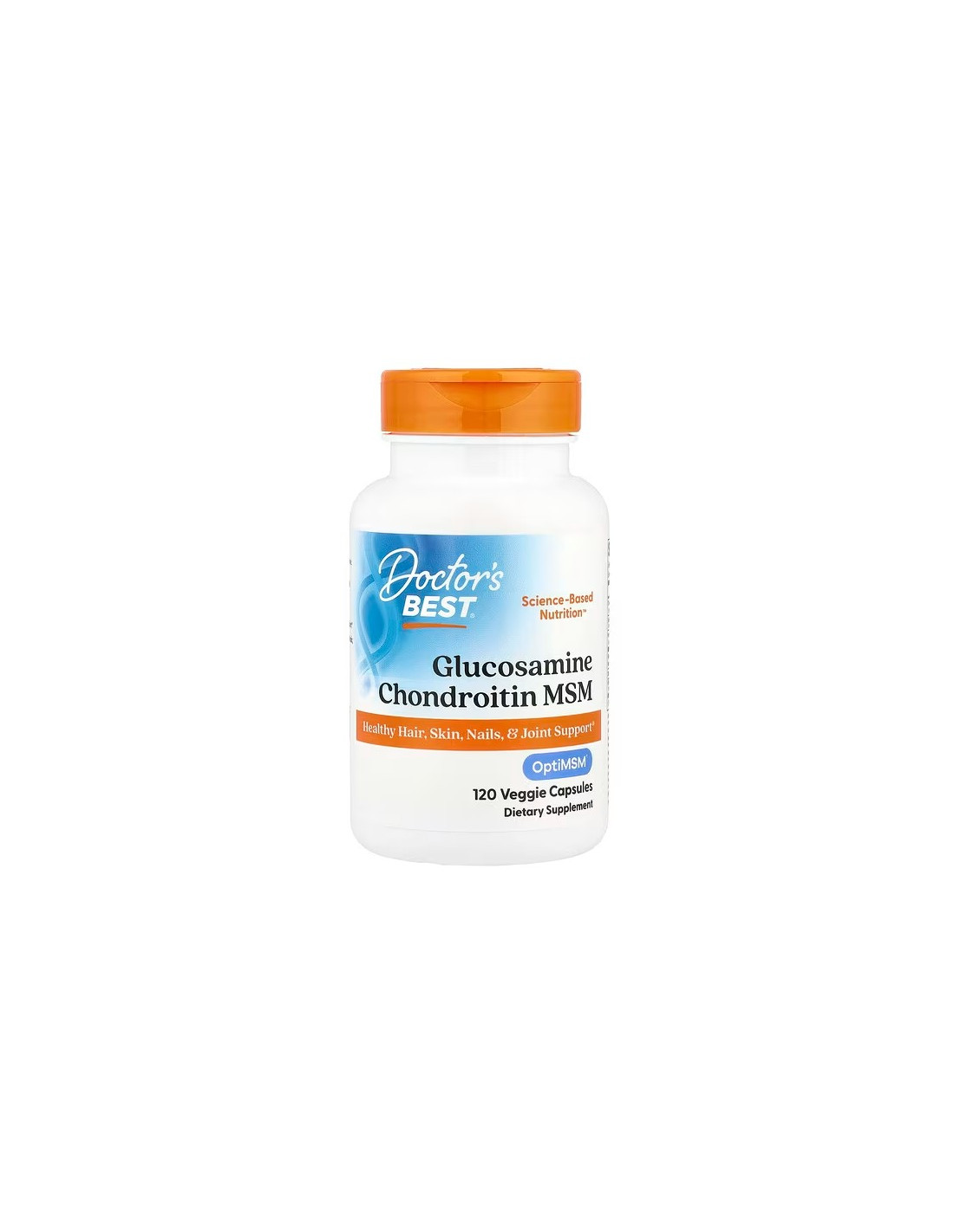 Doctor's Best Glucosamin Chondroitin MSM bietet drei bekannte gelenkunterstützende Nährstoffe in einer Formel: Glucosaminhydrochlorid-Kaliumsulfat, Chondroitinsulfat-Natrium und OptiMSM®. Jede Tagesportion von 4 Kapseln liefert 1500 mg Glucosamin, 1200 mg Chondroitin und 1000 mg MSM.