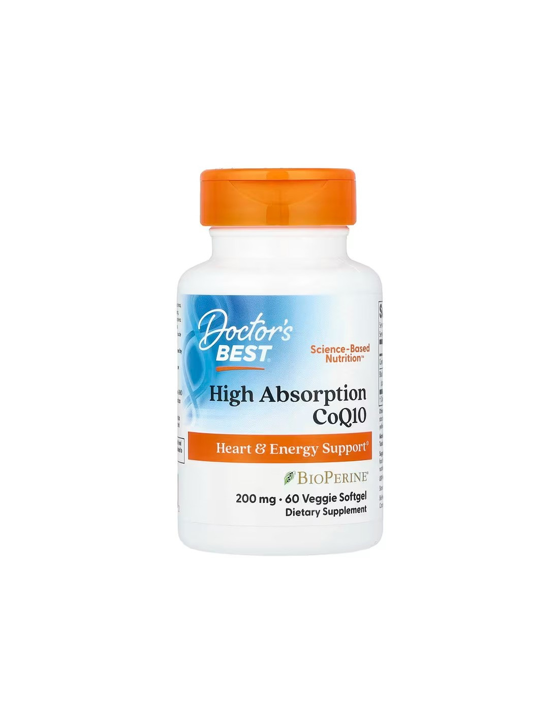 Doctor's Best High Absorption CoQ10 liefert 200 mg Coenzym Q10 (Ubichinon) pro Kapsel, kombiniert mit 5 mg BioPerine®-Schwarzpfefferextrakt zur Unterstützung der Absorption. Diese hochwirksame Formel wird in praktischen vegetarischen Kapseln zur täglichen Nahrungsergänzung angeboten.