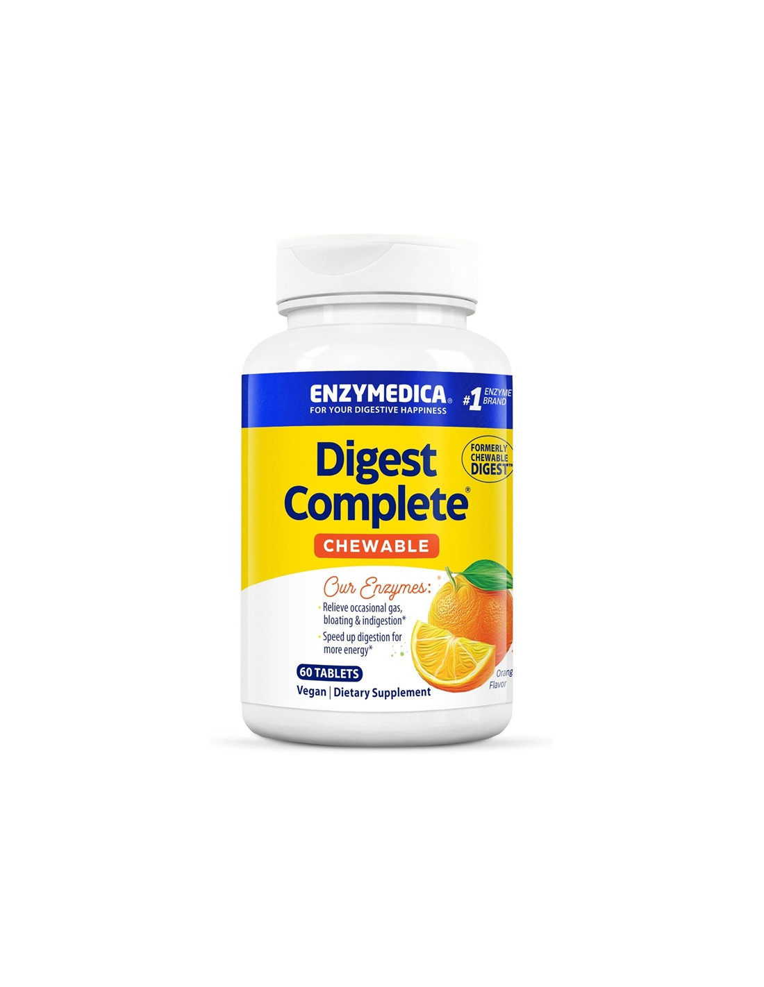 Enzymedica® Chewable Digest liefert einen gezielten Multienzymkomplex in Kautabletten. Die auf dem Etikett angegebenen Aktivitäten sind für Kohlenhydrat-, Protein-, Fett-, Ballaststoff- und Milchprodukte verdauende Enzyme aufgeführt.