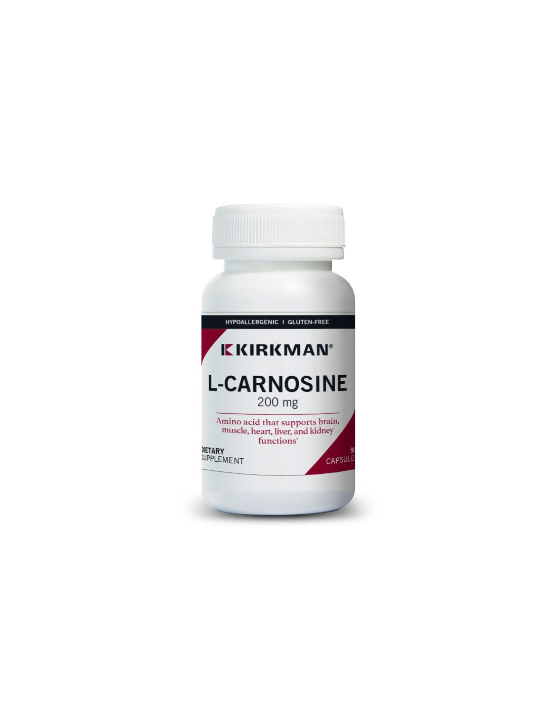 Kirkman® L-Carnosin 200 mg hypoallergene Kapseln enthalten 200 mg reines L-Carnosin pro Kapsel. Dieses Dipeptid besteht aus Beta-Alanin und Histidin. Die hypoallergene Formel ist ideal für Personen mit Nahrungsmittelunverträglichkeiten. Das Ultra-Tested®-Verfahren von Kirkman® prüft auf über 950 Umweltschadstoffe, um Produktsicherheit und -reinheit zu gewährleisten.
