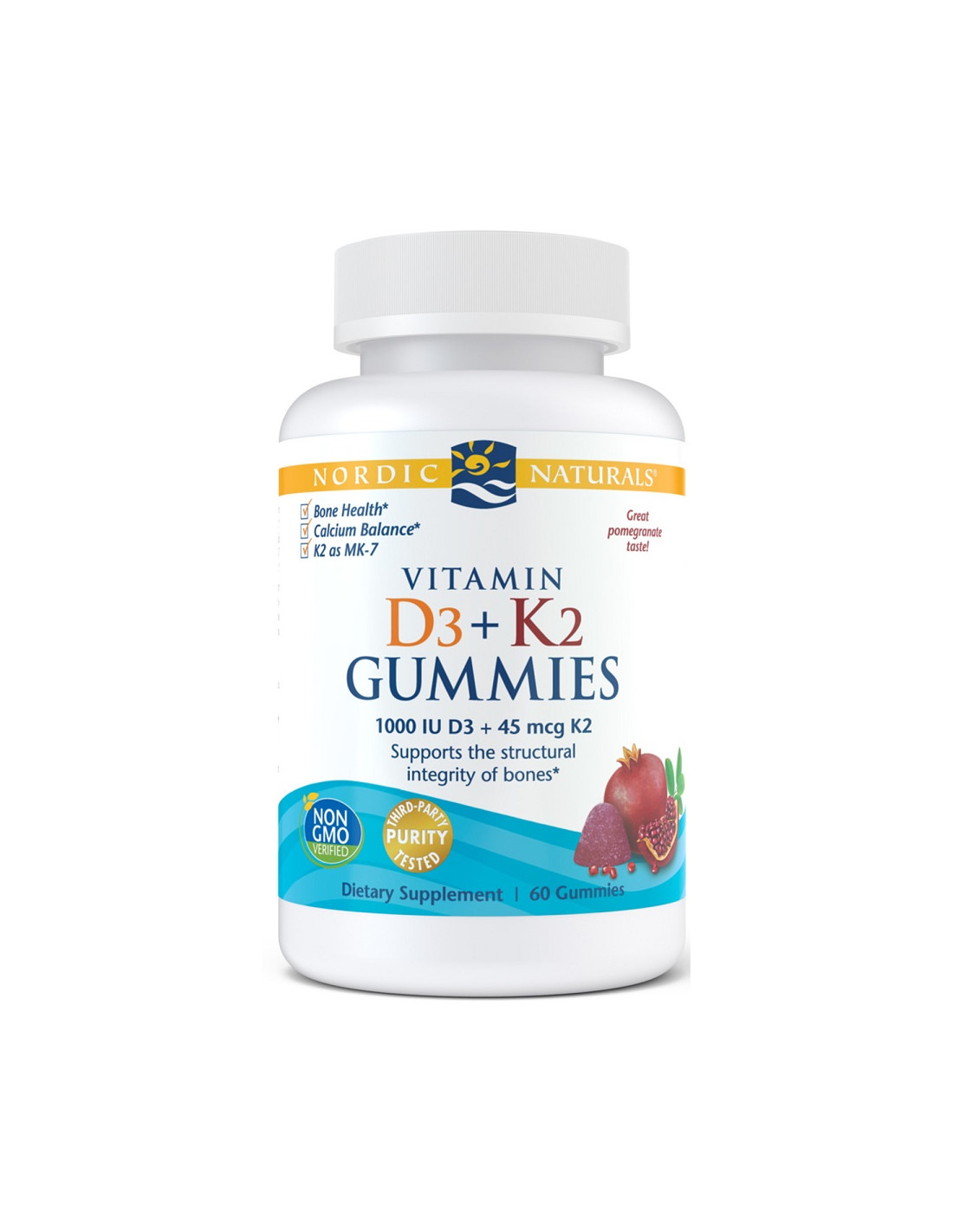 Nordic Naturals Vitamin D3 + K2 Gummies kombinieren zwei essentielle Nährstoffe in einem leckeren, praktischen Format. Jedes Gummi enthält 25 µg (1000 IE) Vitamin D3 und 45 µg Vitamin K2 (als Menachinon-7, MenaQ7®) und unterstützt so eine ausgewogene Ernährung bei Erwachsenen und Kindern. Hergestellt mit Bio-Zutaten und natürlichen Fruchtaromen.