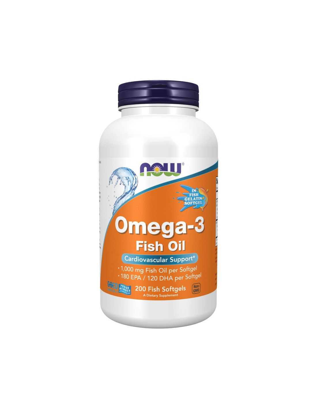 NOW® Omega-3 Fischöl liefert 2.000 mg Fischölkonzentrat pro 2 Weichkapseln, darunter 360 mg EPA und 240 mg DHA. Molekular destilliert für höchste Reinheit, verkapselt in Weichkapseln aus Rindergelatine und in den USA qualitätsgeprüft.