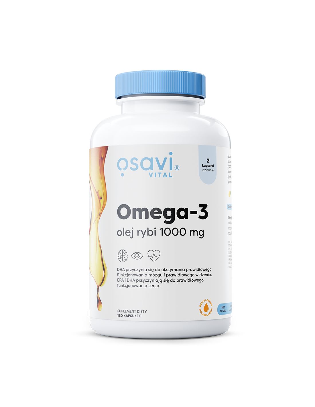 Omega-3 Olej Rybi Molecularly Distilled, 1000mg (Cytryna) - 180 softgels | Osavi