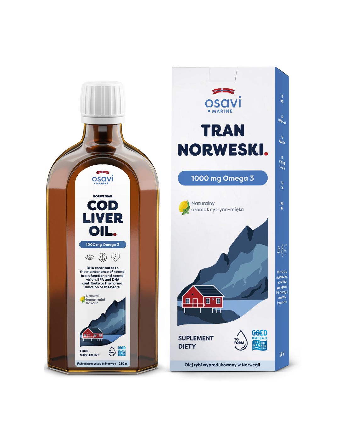 Tran Norweski, 1000mg Omega 3 (Cytryna - Mięta) - 250 ml. | Osavi
