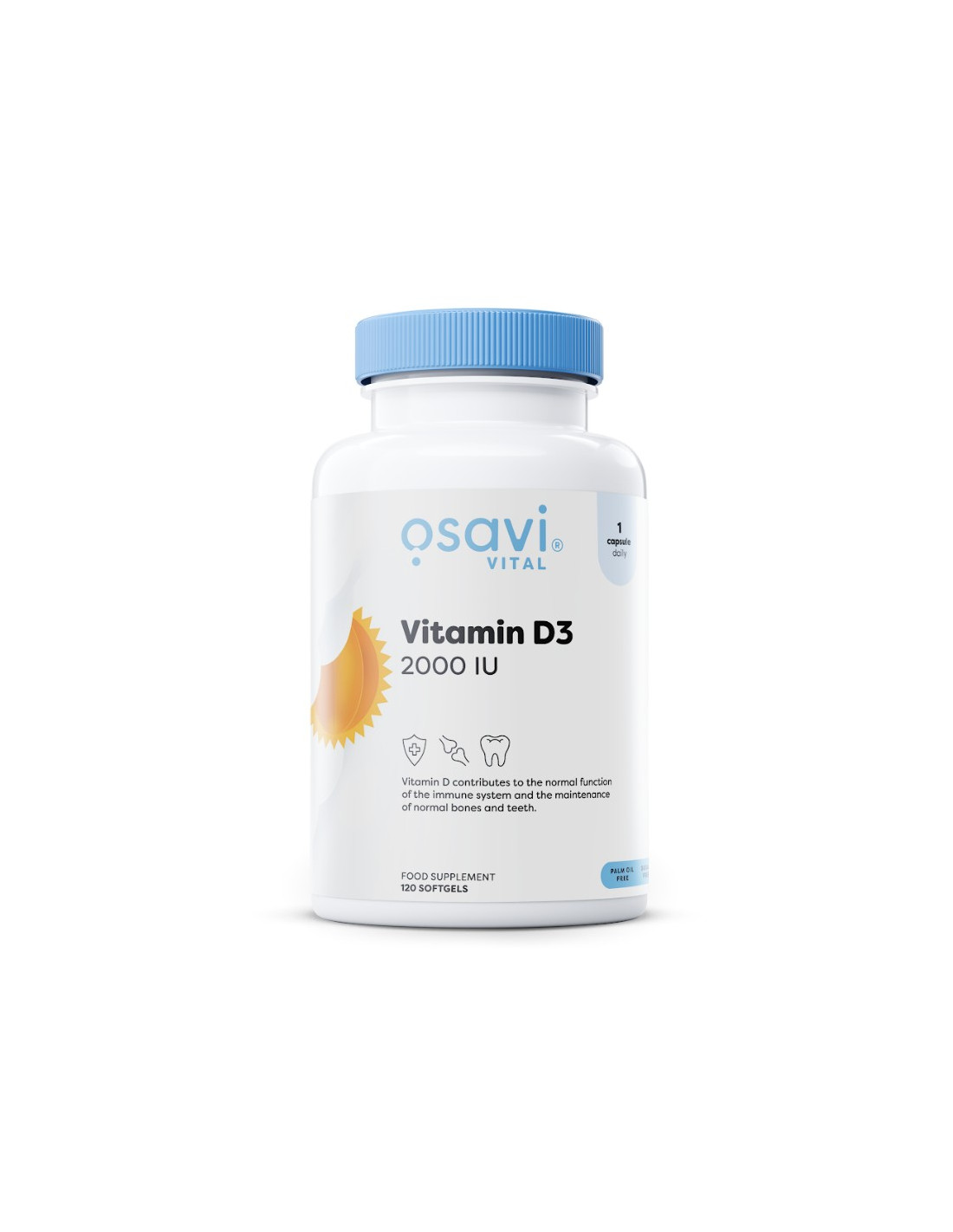 Osavi Vitamin D3 2000 IE liefert eine reine Form von Vitamin D3 (Cholecalciferol) in praktischen Weichkapseln. Jede Kapsel enthält 50 µg Vitamin D3 (1000 % NRV), formuliert in Öl für optimale Aufnahme und einfache tägliche Nahrungsergänzung.