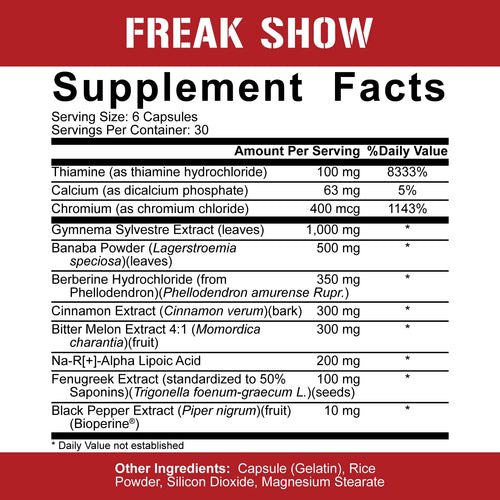 It couldn't be more clear. Freak Show is a powerful formula that can take your gains to new heights! There's no other insulin mimicker to compare with what Freak Show provides. Effective dosing of ingredients clinically researched to perform.