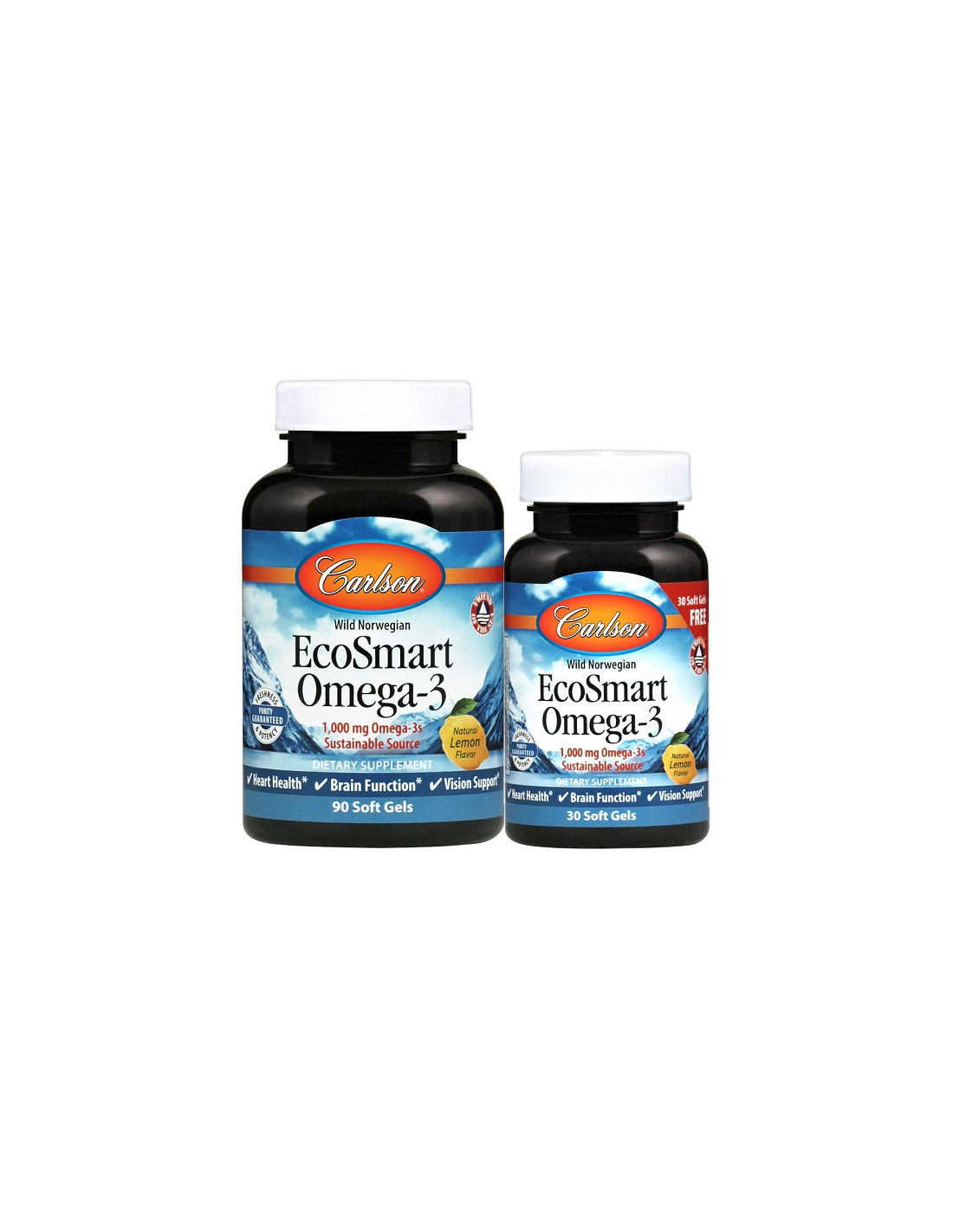 Smart Omega-3, 1000mg Natural Lemon - 90 + 30 softgels | Carlson Labs