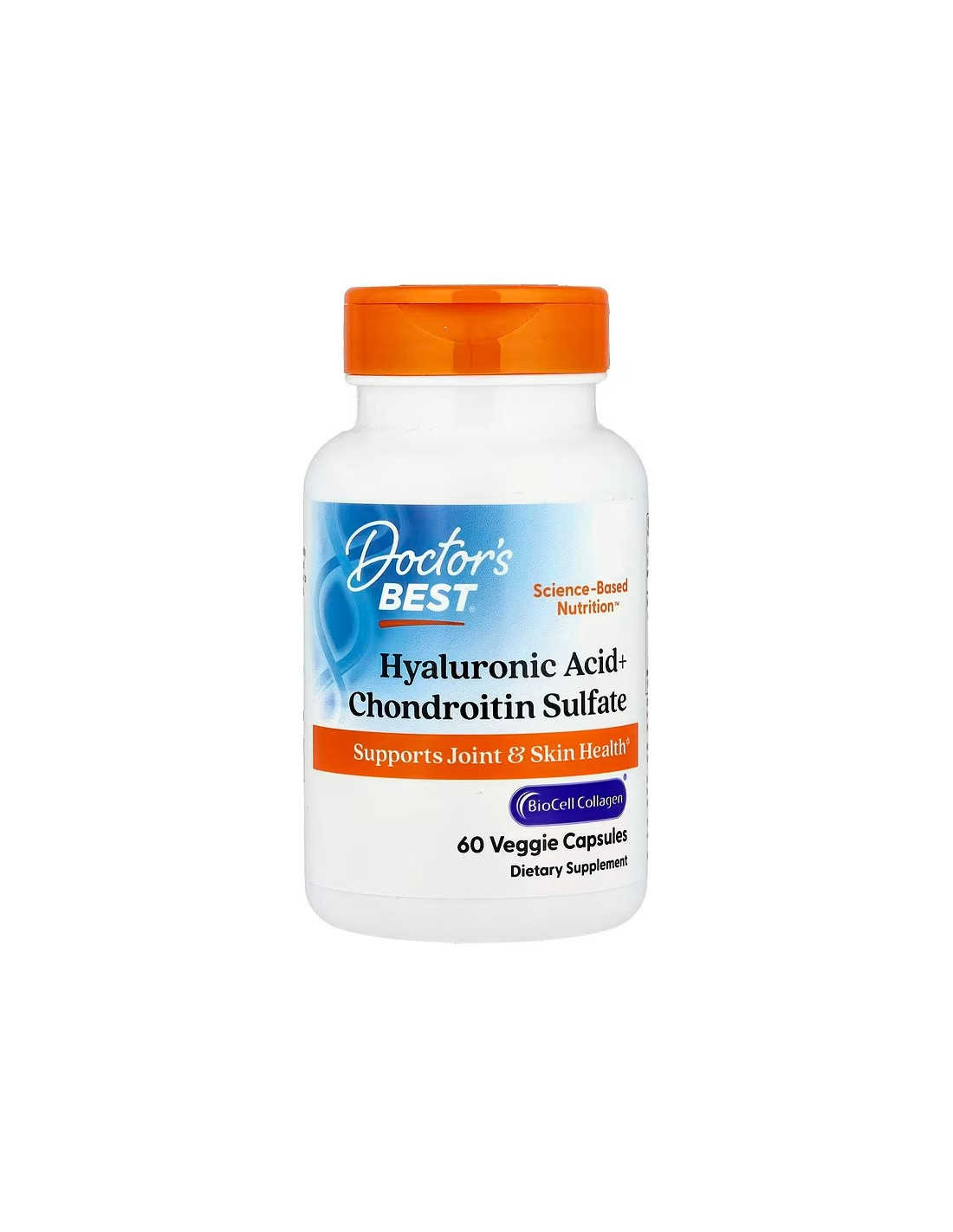 Doctor’s Best Hyaluronic Acid + Chondroitin Sulfate combines BioCell Collagen® with hydrolyzed collagen type II, chondroitin sulfate, and hyaluronic acid. Each 2-capsule serving provides 1000 mg BioCell Collagen® complex derived from chicken sternal cartilage.