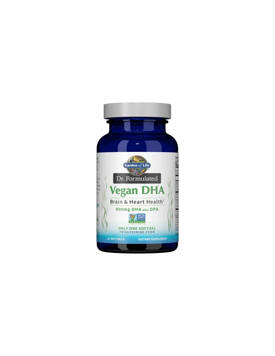Garden of Life Algae Omega-3 is a softgel food supplement formulated with triglyceride-form algal oil, providing omega-3 fatty acids from a non-fish, plant-based source. The product contains naturally occurring specialized lipid mediators and is designed for daily adult use.