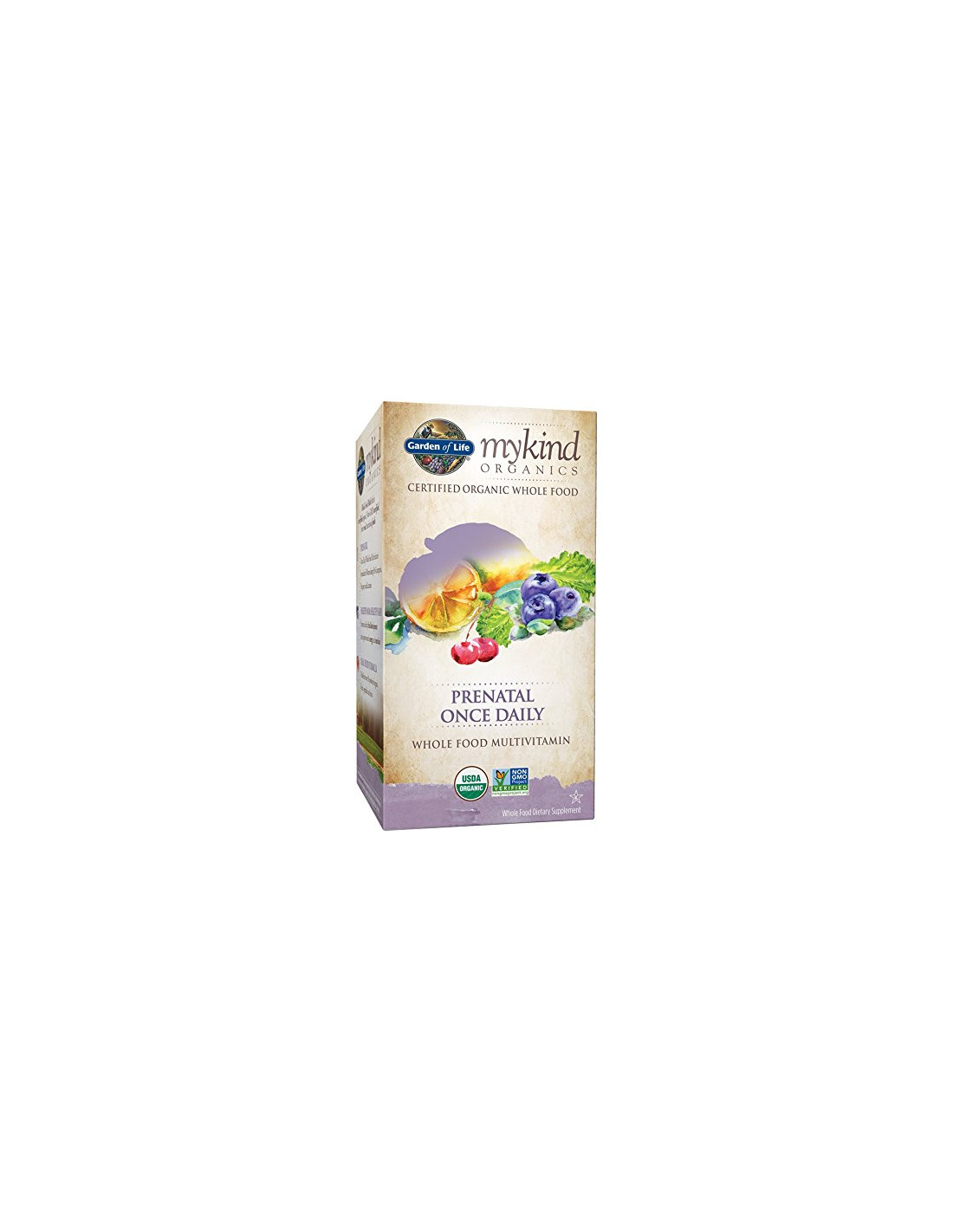 Garden of Life Organics Prenatal Once Daily Multi is a food supplement designed for once-daily use. It contains vitamins and minerals sourced from organic food ingredients, combined in a single tablet format for daily intake.