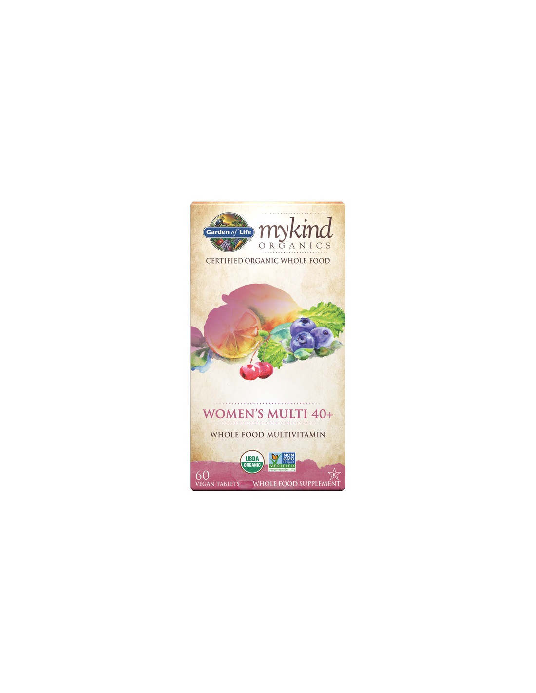 Garden of Life Organics Women’s Multi 40+ is a food supplement providing vitamins and minerals derived from organic food blends. The formulation includes a wide range of nutrients and organic botanical blends, presented in tablet form for daily supplementation.