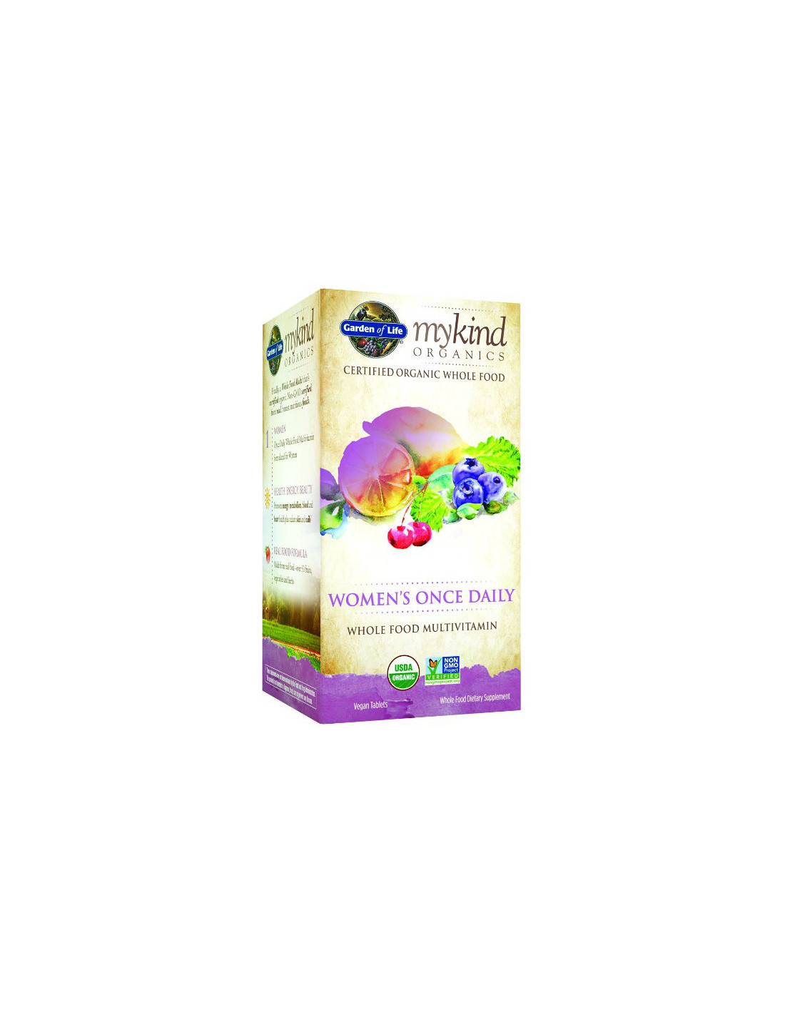 Garden of Life Organics Women’s Once Daily Multi is a food supplement providing vitamins and minerals derived from organic food blends. The formulation is designed for once-daily intake and supplied in tablet form.