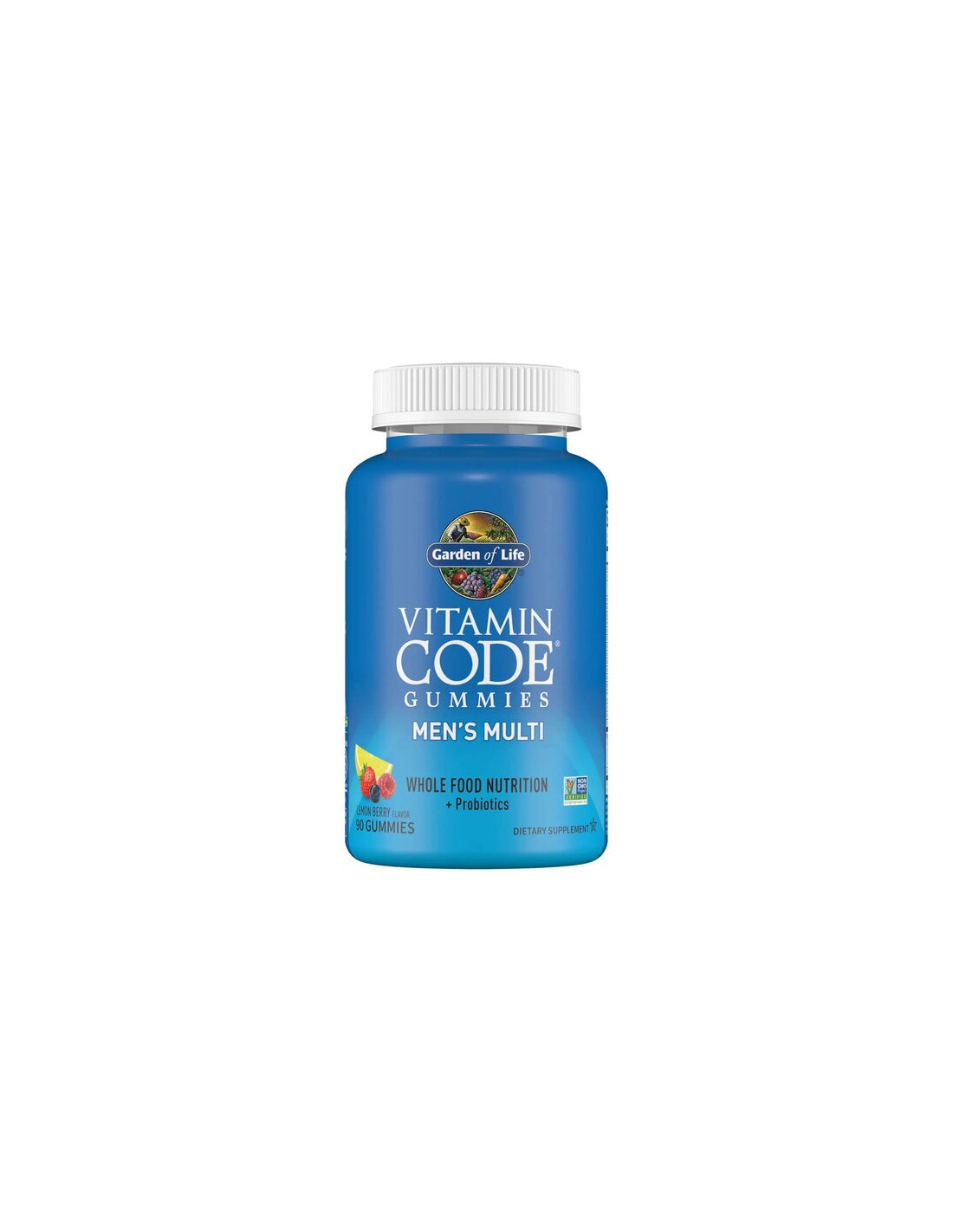 Garden of Life Vitamin Code Men’s Multi Gummy is a food supplement formulated for adult men. It provides a range of vitamins and minerals derived from nutrient media, complemented by an organic fruit blend and a probiotic strain. The chewable gummy format is designed for easy and convenient daily intake.