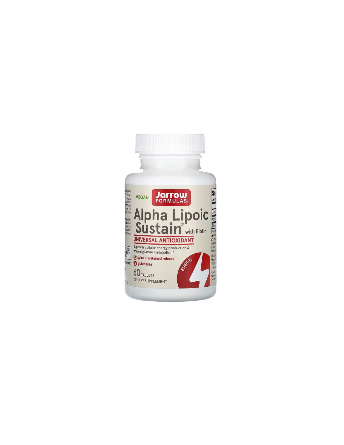 Alpha Lipoic Acid (ALA) is an antioxidant that supports normal glucose metabolism and cellular energy production. Jarrow Formulas Alpha Lipoic Sustain is formulated with advanced bilayer Sustain tablets that combine 1/3 Quick Release and 2/3 Sustained Release formats to raise and to maintain ALA blood levels over time.