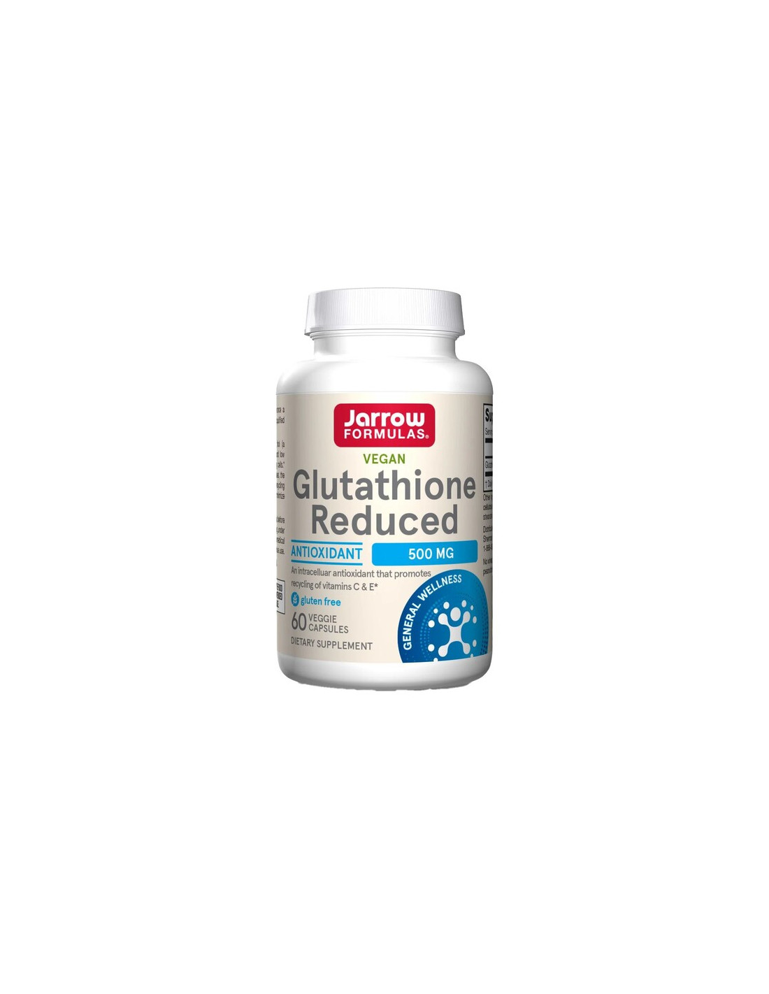 Jarrow Formulas® Glutathione Reduced is a tripeptide composed of glutamic acid, cysteine, and glycine, serving as a powerful antioxidant that supports cellular detoxification and immune function.