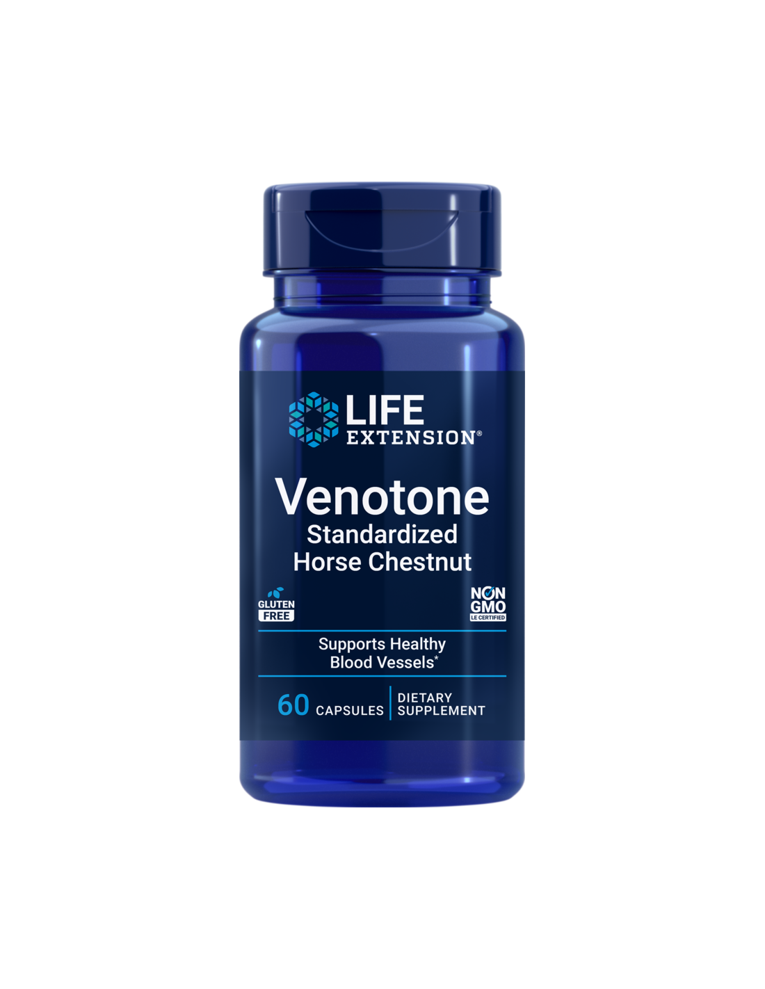 Life Extension® Venotone – Standardized Horse Chestnut Seed Extract (60 Capsules) delivers 250 mg of horse chestnut (Aesculus hippocastanum) seed extract standardized to 20 % triterpene glycosides (50 mg escin) per capsule. This sustained-release formula helps support healthy vascular function, maintain fluid balance, reduce occasional leg discomfort, and provide antioxidant veno-protective support.*
