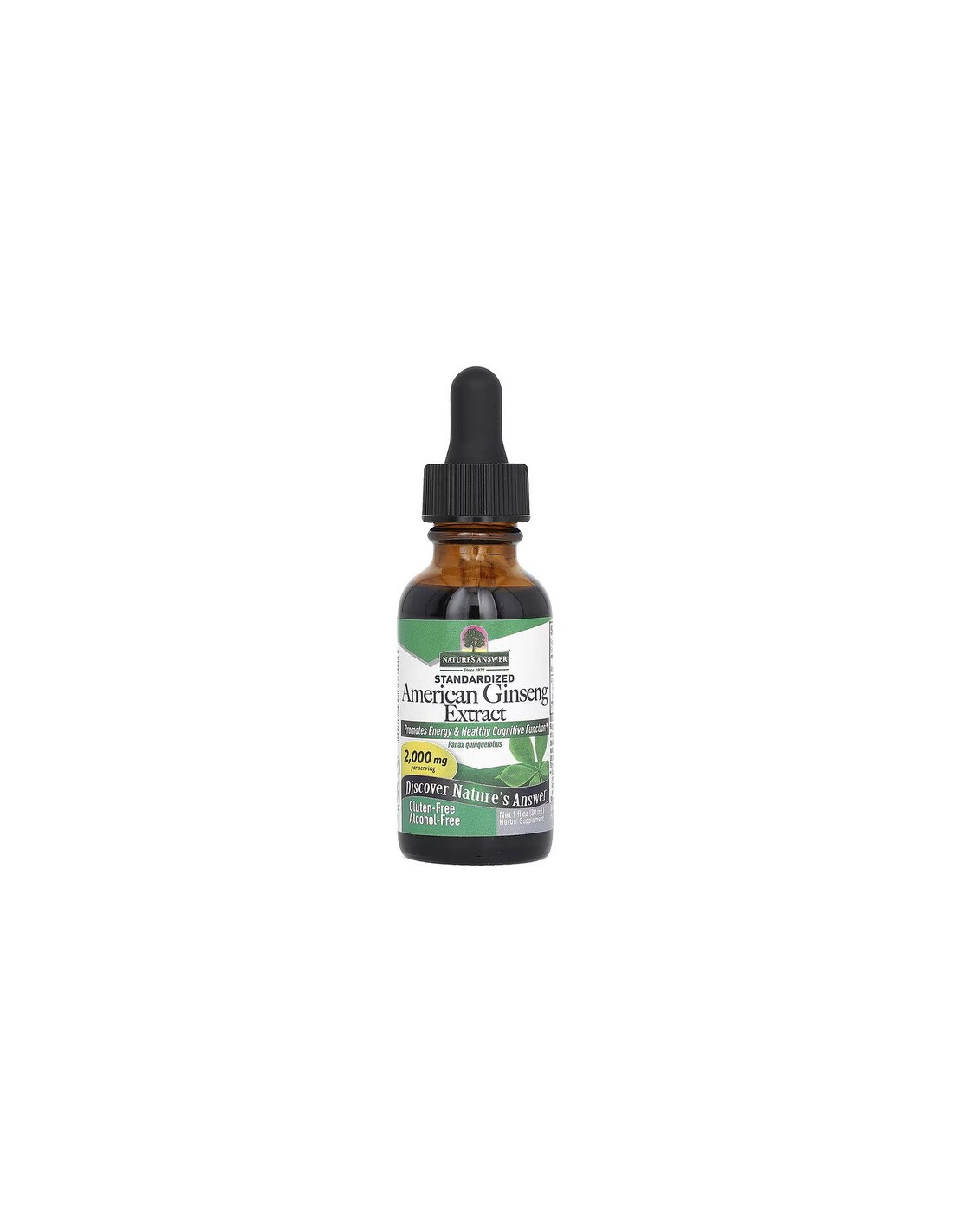 Nature’s Answer American Ginseng Root 1 oz Low Alcohol is a carefully formulated food supplement, featuring American ginseng (Panax quinquefolius) root/rhizome extract. Prepared using the brand’s signature Bio-Chelated® cold extraction method, it reflects the exact composition listed on the official label.