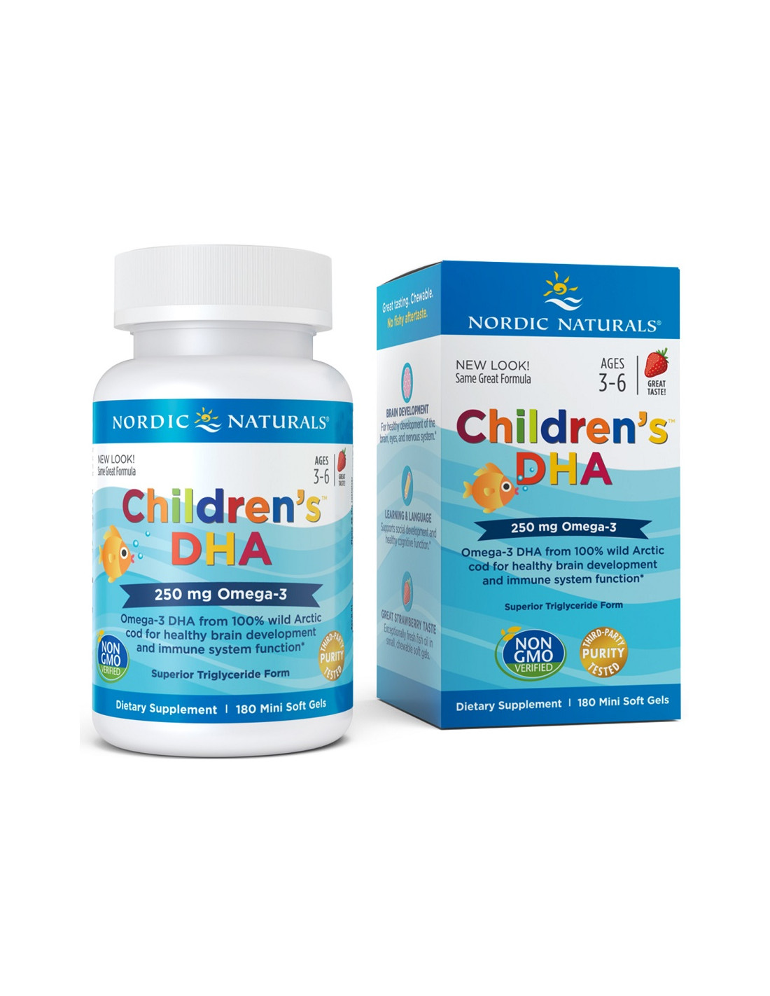 Nordic Naturals Children’s DHA is a high-quality food supplement formulated from Arctic cod liver oil, providing omega-3 fatty acids in their natural triglyceride form. Each serving delivers 250 mg total omega-3s, including 80 mg EPA and 120 mg DHA, for convenient daily use in children aged 1 year and above.