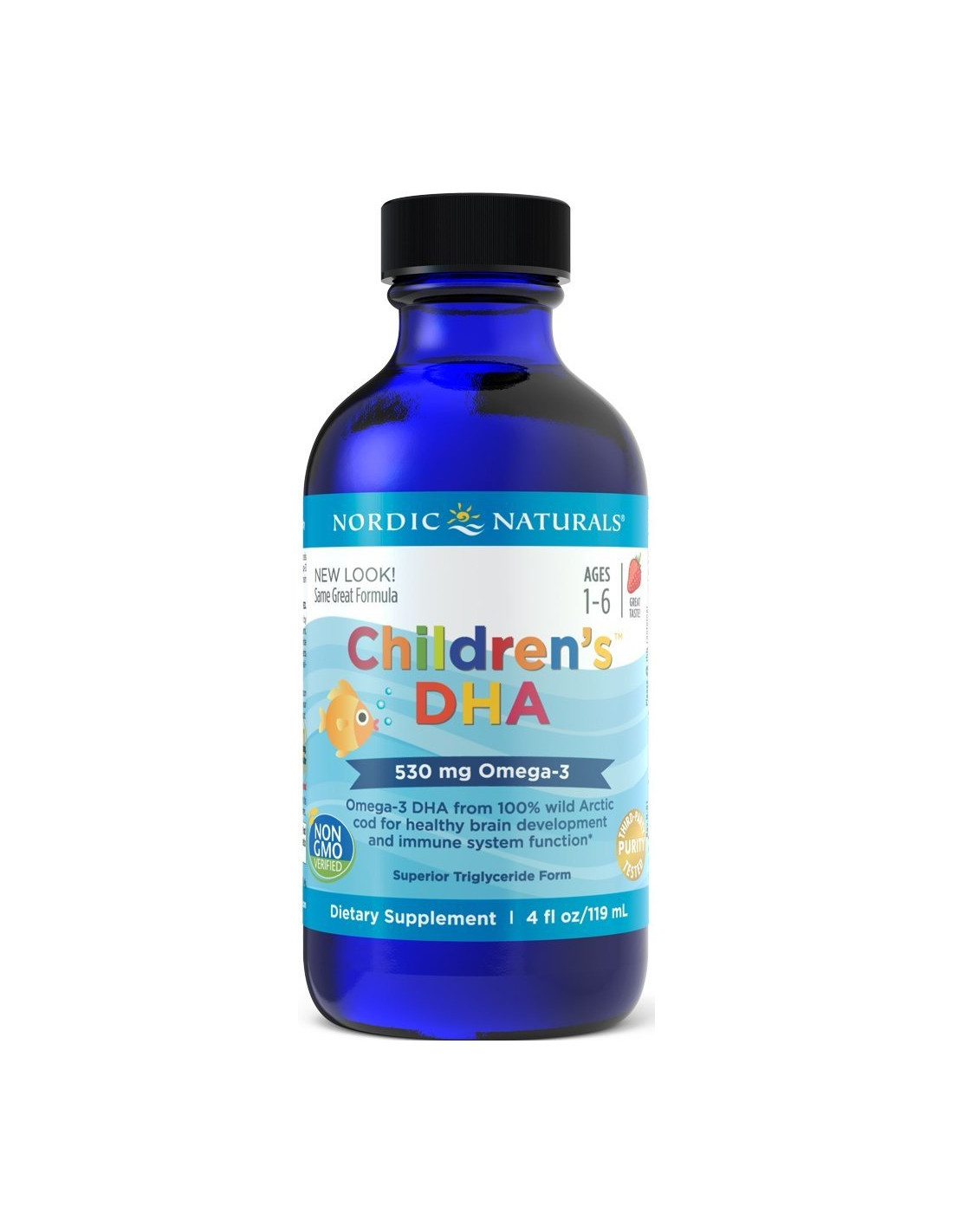 Nordic Naturals Children’s DHA Liquid is a premium omega-3 supplement designed for children. Each ½ teaspoon (2.5 mL) provides 530 mg total omega-3s, including 255 mg DHA and 170 mg EPA, derived from pure Arctic cod liver oil in natural triglyceride (rTG) form for better absorption. Naturally lemon-flavoured and third-party tested for purity and freshness.