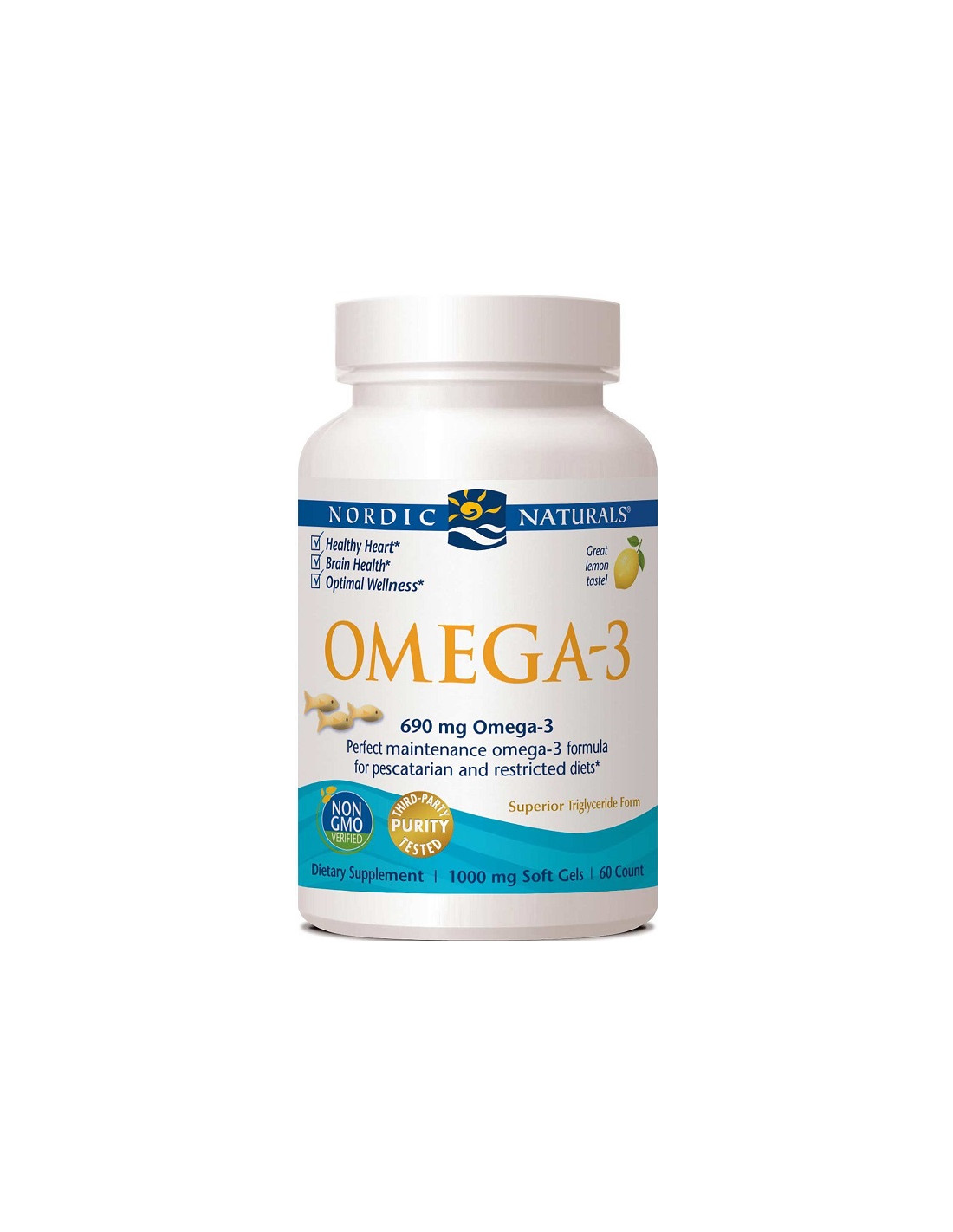 Nordic Naturals Omega-3 is a high-quality fish oil food supplement providing essential omega-3 fatty acids EPA and DHA in natural triglyceride form. It is purified from deep sea fish and processed for exceptional freshness and stability.