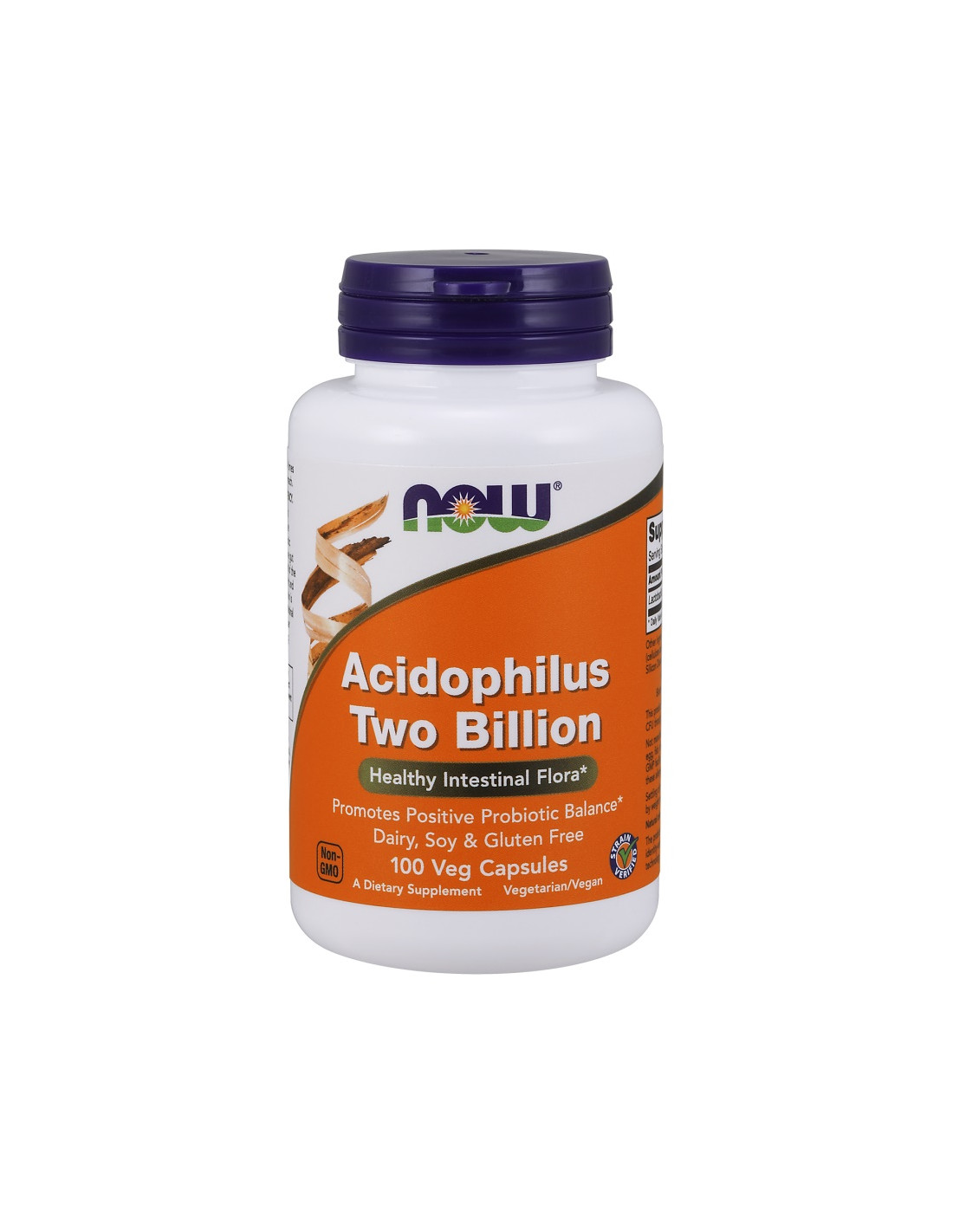 NOW® Acidophilus Two Billion Veg Capsules deliver 2 billion CFU of Lactobacillus acidophilus (La-14) per capsule. The strain is identity-verified using DNA fingerprinting technology to ensure quality and consistency. Produced in a GMP-certified facility with globally sourced ingredients.