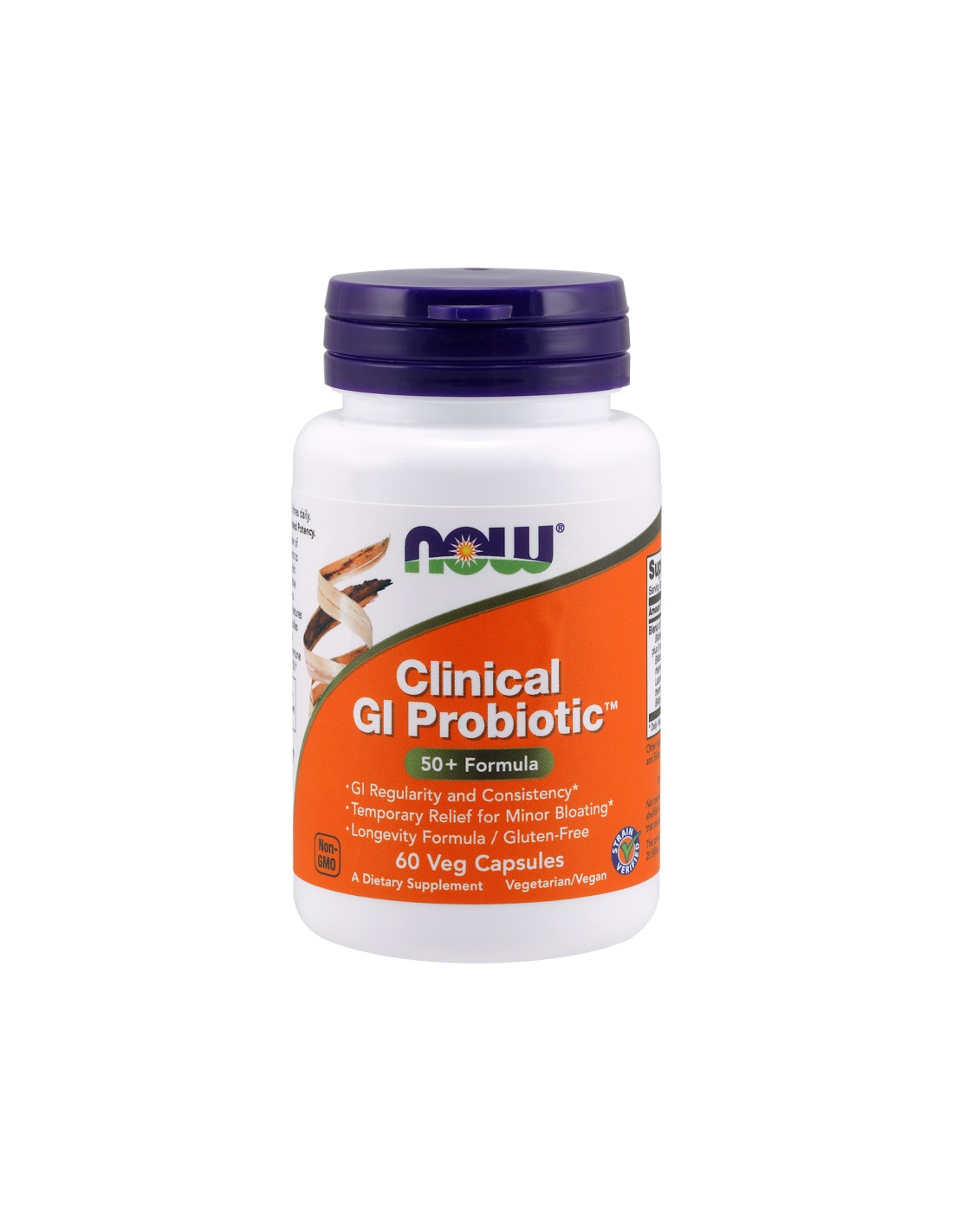 NOW® Clinical GI Probiotic Veg Capsules provide a blend of 9 carefully selected probiotic strains delivering 20 billion CFU per serving. Each two-capsule serving is formulated according to the official label and DNA-verified for strain identity.
