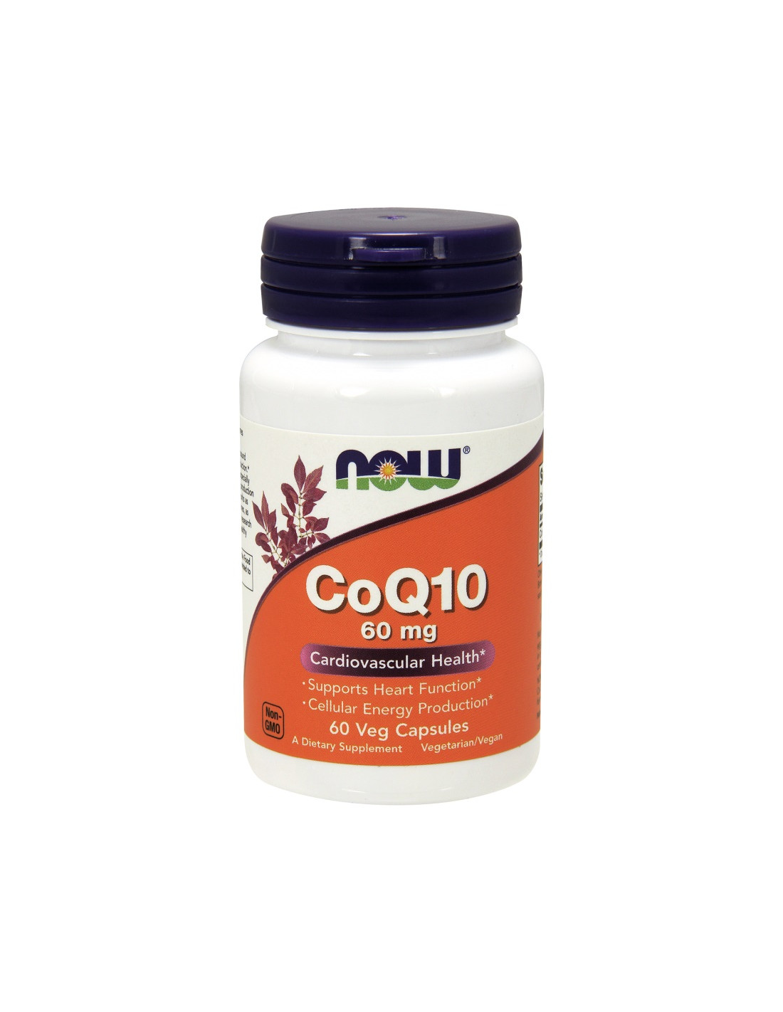 NOW® CoQ10 Veg Capsules provide coenzyme Q10 (ubiquinone) in a convenient vegetable capsule form. Each serving delivers 60 mg of CoQ10, produced by fermentation in the all-trans form.