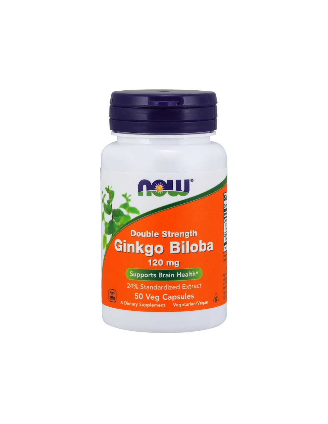 NOW® Ginkgo Biloba Double Strength 120 mg Veg Capsules provide a concentrated Ginkgo biloba leaf extract together with organic Eleuthero root. Each capsule contains a standardized ginkgo extract with defined ginkgoflavonglycoside and terpene lactone content.