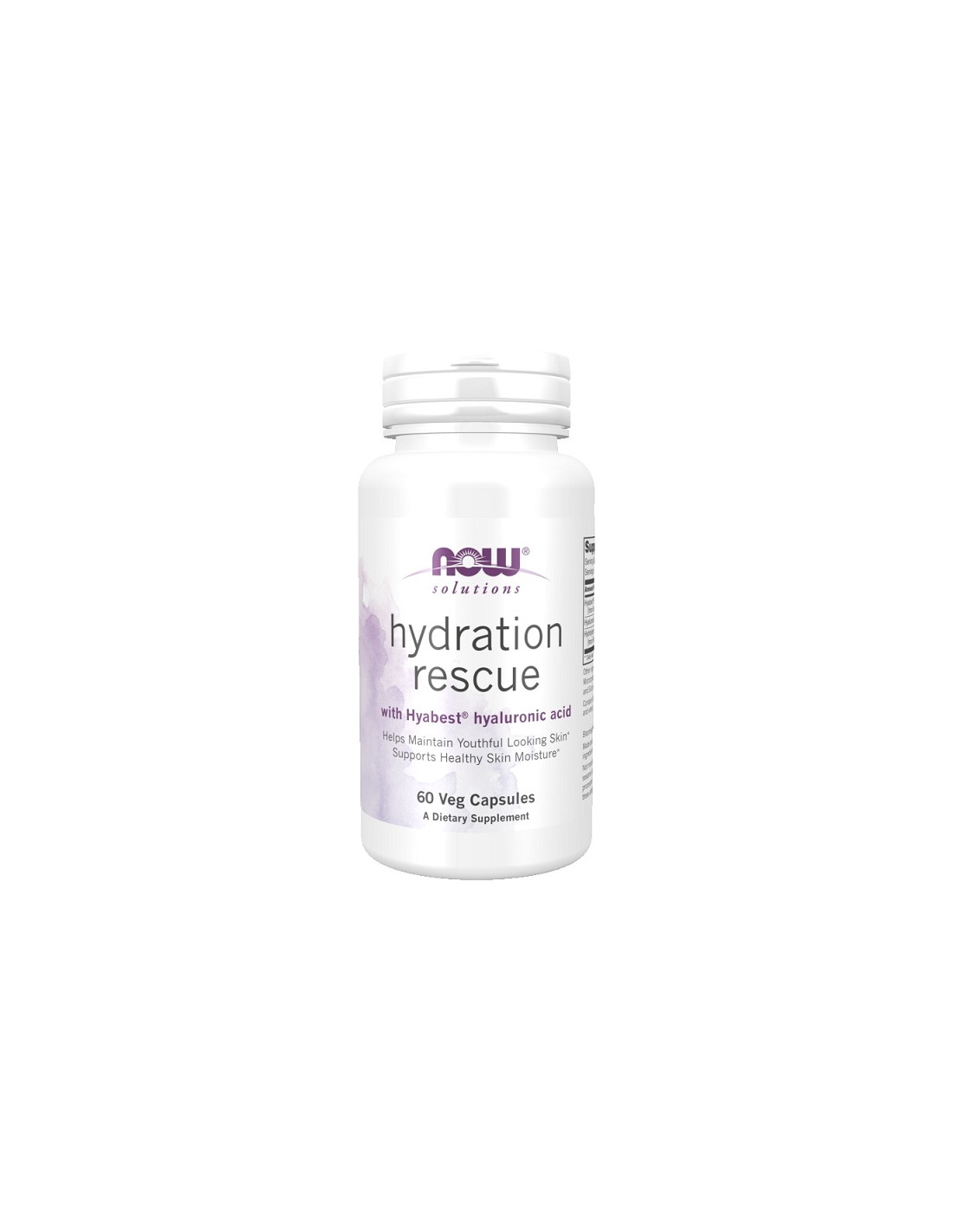 NOW® Hydration Rescue provides a blend of hyaluronic acid and hydrolyzed collagen from fish skin, offered in a convenient capsule form. Made in the USA with globally sourced ingredients, tested for quality and consistency.