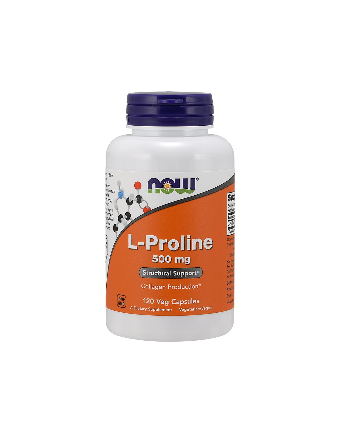 NOW® L-Proline delivers 1,000 mg free-form L-proline per daily serving of two capsules. This amino acid formula is produced in GMP-certified facilities and suitable for vegetarian and vegan use.