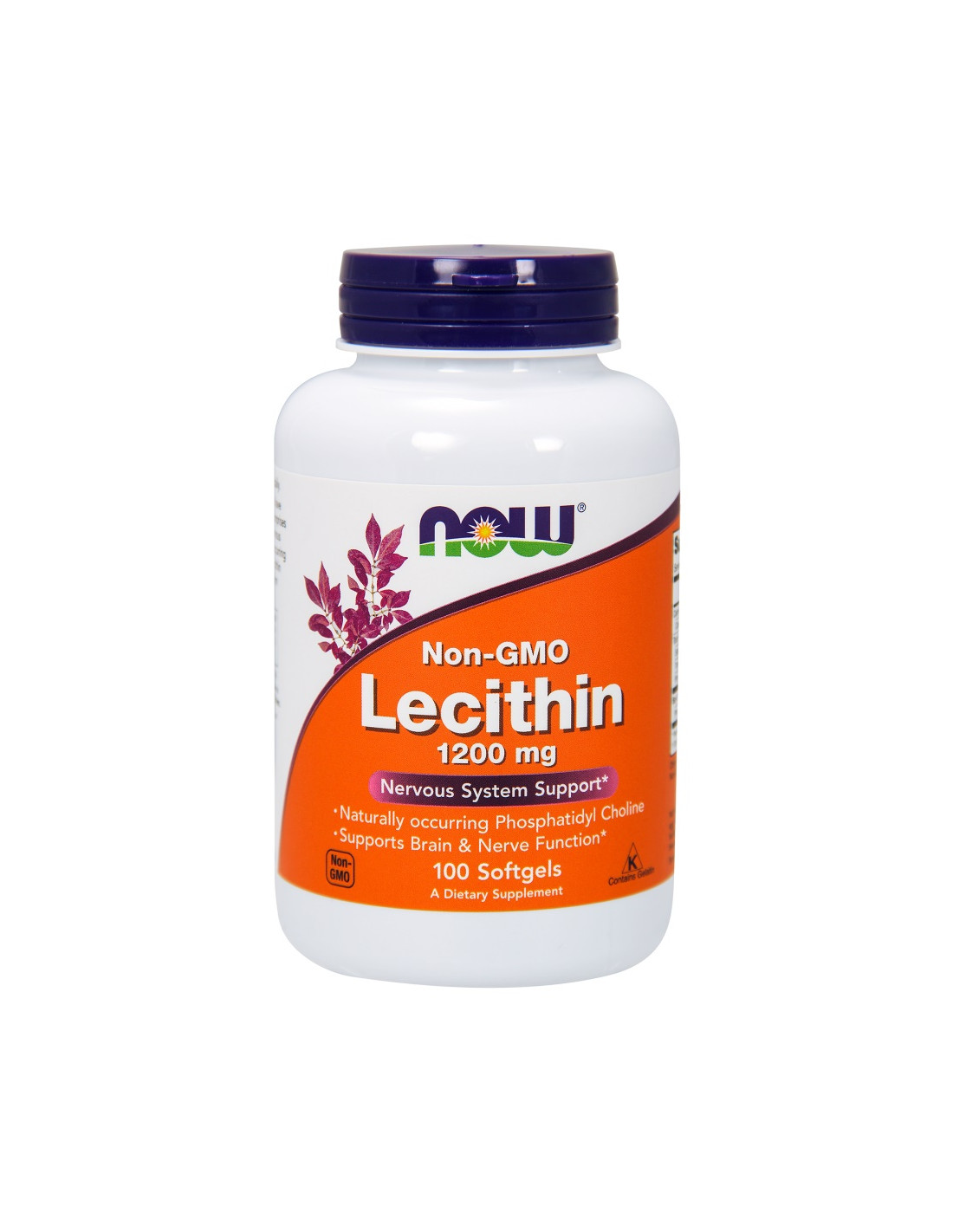 NOW® Lecithin 1200 mg features non-GMO soy lecithin in softgel form. Each serving provides 3.6 g lecithin and 500 mg phosphatidyl choline, manufactured in GMP-certified facilities for quality and safety.