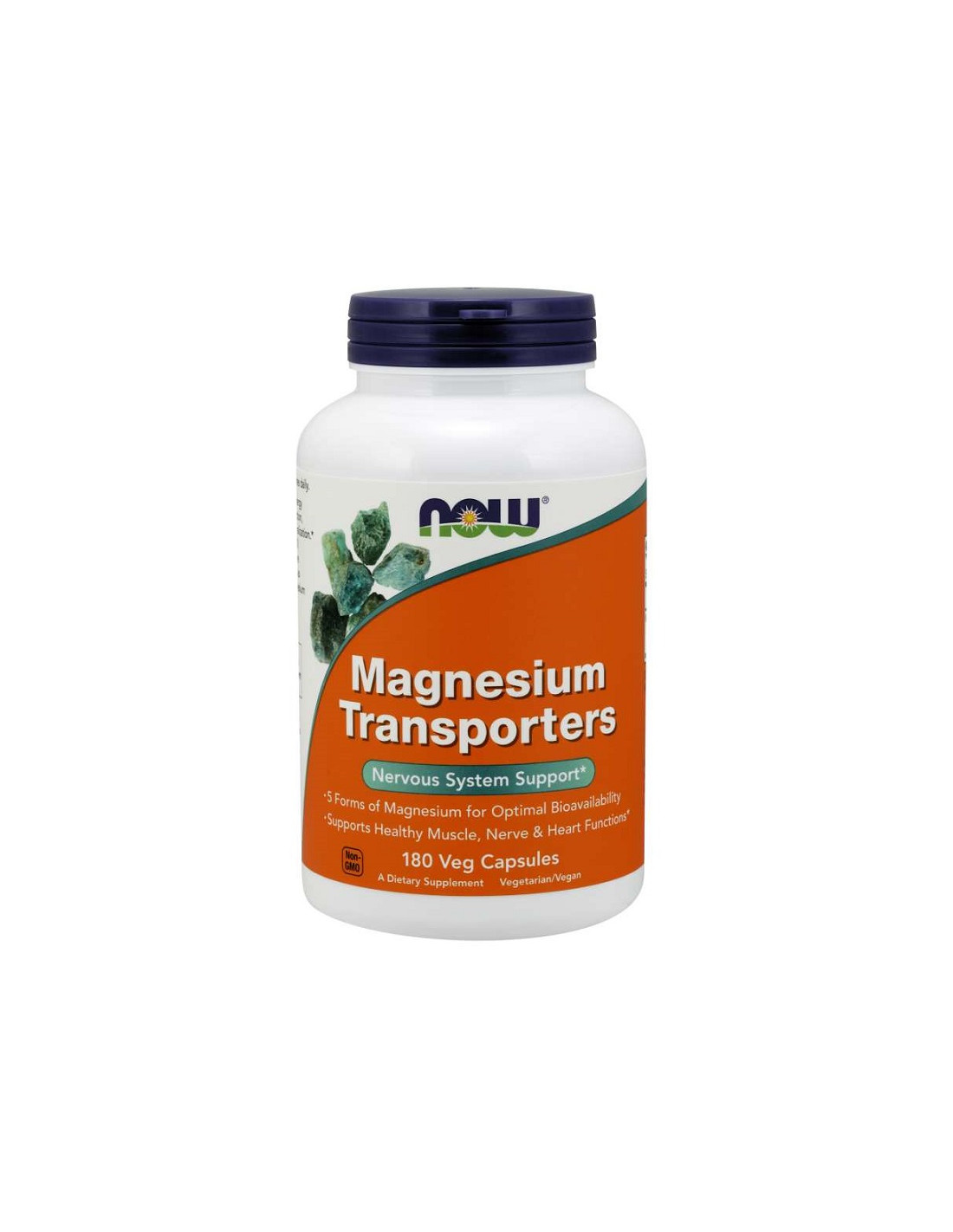 NOW® Magnesium Transporters provides 120 mg of elemental magnesium per capsule, derived from a blend of citrate, taurinate, malate, glycinate and aspartate forms. This vegan-friendly supplement is free from common allergens and produced under strict quality standards.