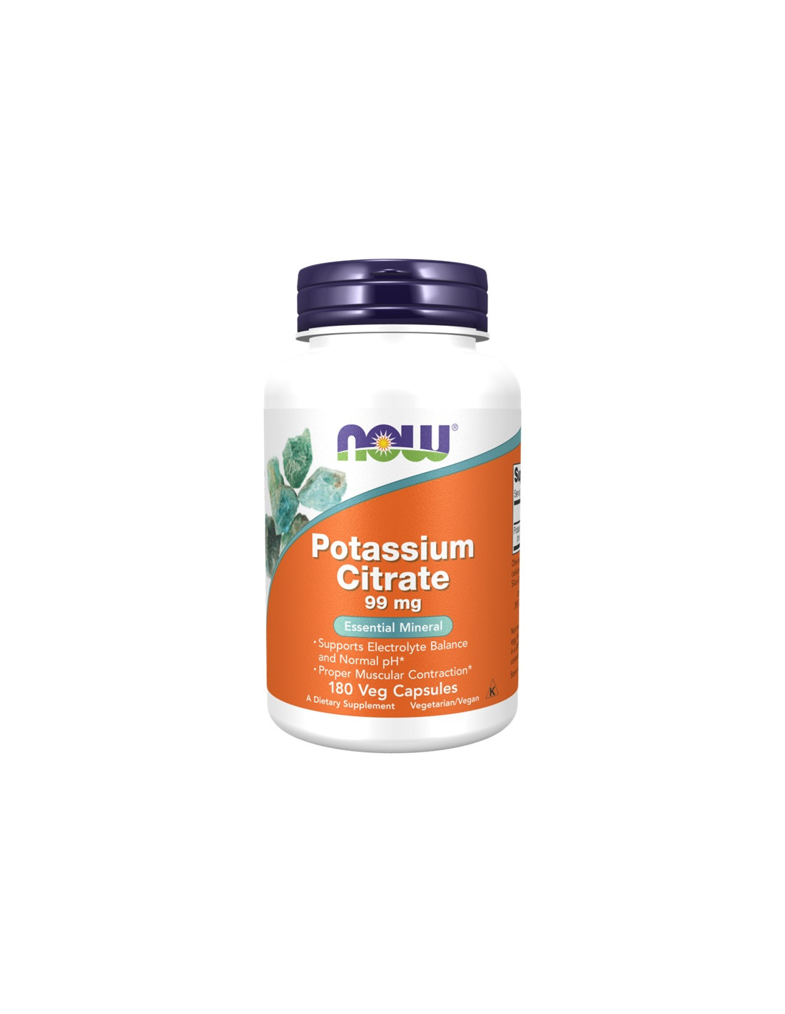 NOW® Potassium Citrate delivers 99 mg elemental potassium per serving, sourced from 310 mg potassium citrate. Produced in GMP-certified facilities, free from yeast, gluten, soy, milk, egg, fish, shellfish, and tree nuts.
