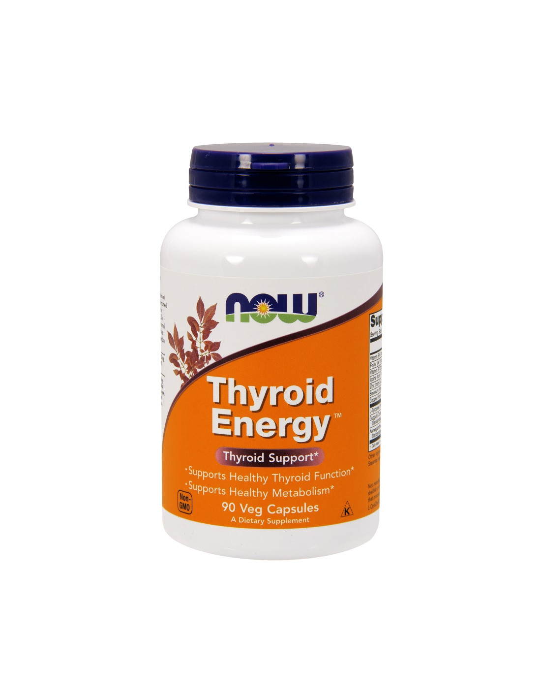 NOW® Thyroid Energy Veg Capsules provide a multi-nutrient blend in vegetarian capsules. Each 2-capsule serving supplies free-form L-Tyrosine alongside key vitamins and minerals (B-6, folate, B-12, iodine, zinc, selenium, copper) and a standardized ashwagandha extract. Produced in a GMP facility.