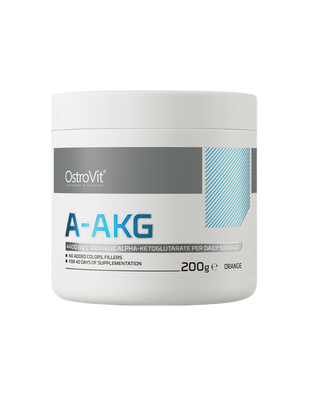 OstroVit A-AKG is a powdered food supplement formulated with L-arginine alpha-ketoglutarate. The product is flavoured and contains sweeteners, making it convenient to prepare and consume as part of daily supplementation.