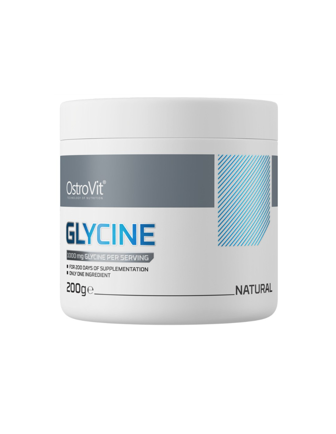 OstroVit Glycine is a powdered food supplement formulated with L-glycine. The product contains a single active ingredient in a simple, unflavoured form, allowing convenient preparation and flexible daily intake.