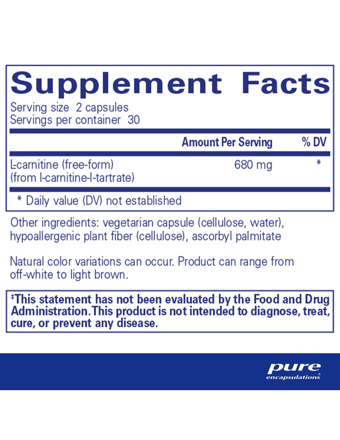 L-carnitine-l-tartrate, hypoallergenic plant fibre (microcrystalline cellulose), ascorbyl palmitate. Vegetarian capsule (hydroxypropyl methylcellulose).