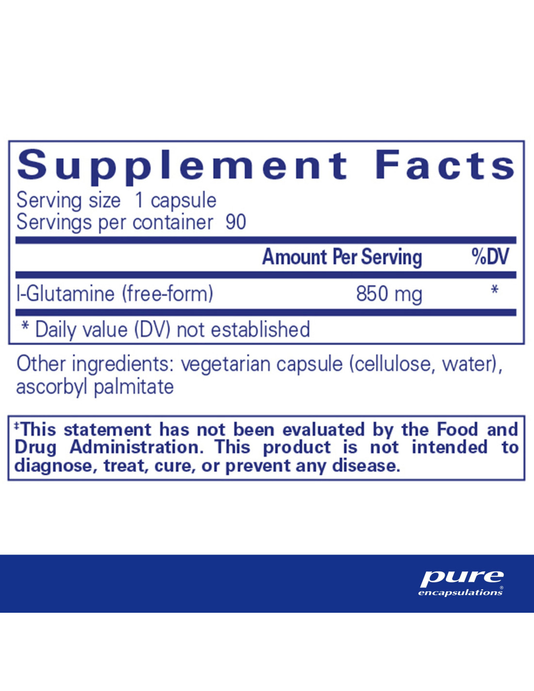 L-Glutamine provides 850 mg of the amino acid glutamine.