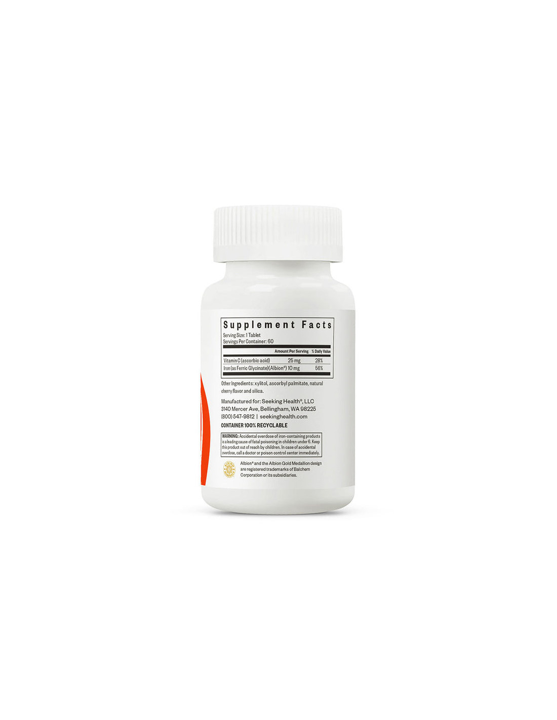 Iron Chewable contains a form of iron, ferric glycinate, which is well tolerated and is gentle on the stomach. These cherry flavoured tablets are sweetened with natural flavours and xylitol. Chewable sugar-free option which is a great tasting easy way to improve iron deficiency. Useful for those that cannot swallow tablets or have delicate stomachs. Iron supports healthy oxygen transportation, red blood cell formation, muscle function and a strong metabolism.