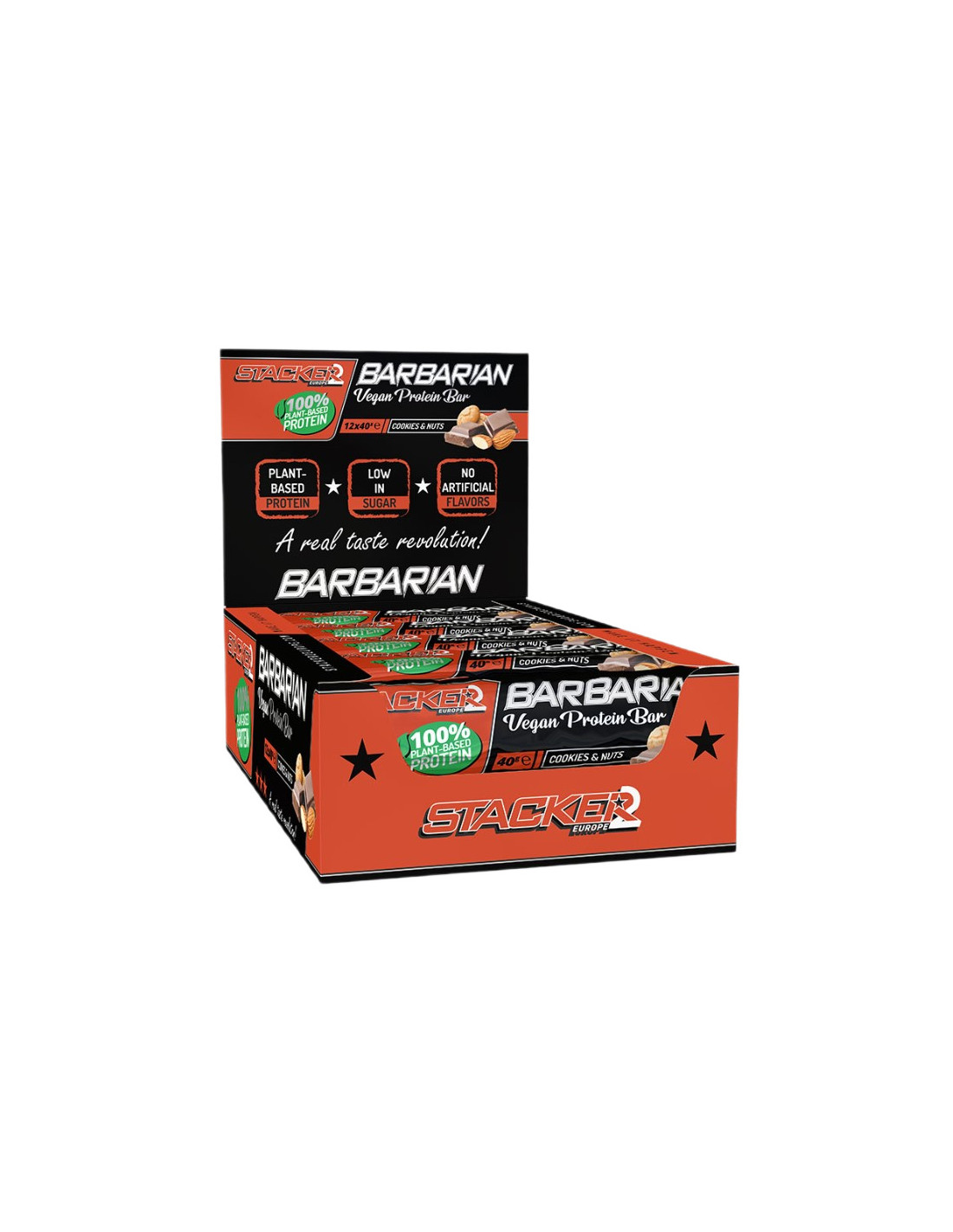 Barbarian Vegan Protein Bar, Cookies & Nuts - 12 x 40g | Stacker2 Europe