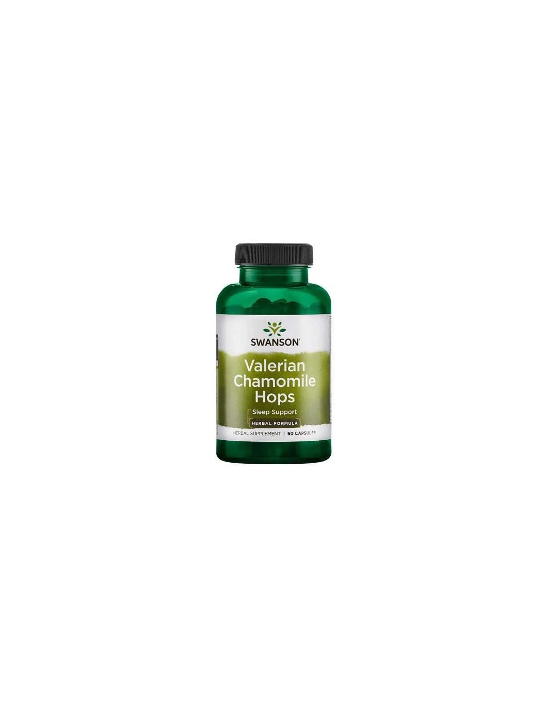 Swanson Superior Herbs Valerian, Chamomile & Hops Sleep Complex contains a blend of standardized botanical extracts derived from hops flower, chamomile flower and valerian root. Each serving delivers defined amounts of these plant-based components in capsule form.