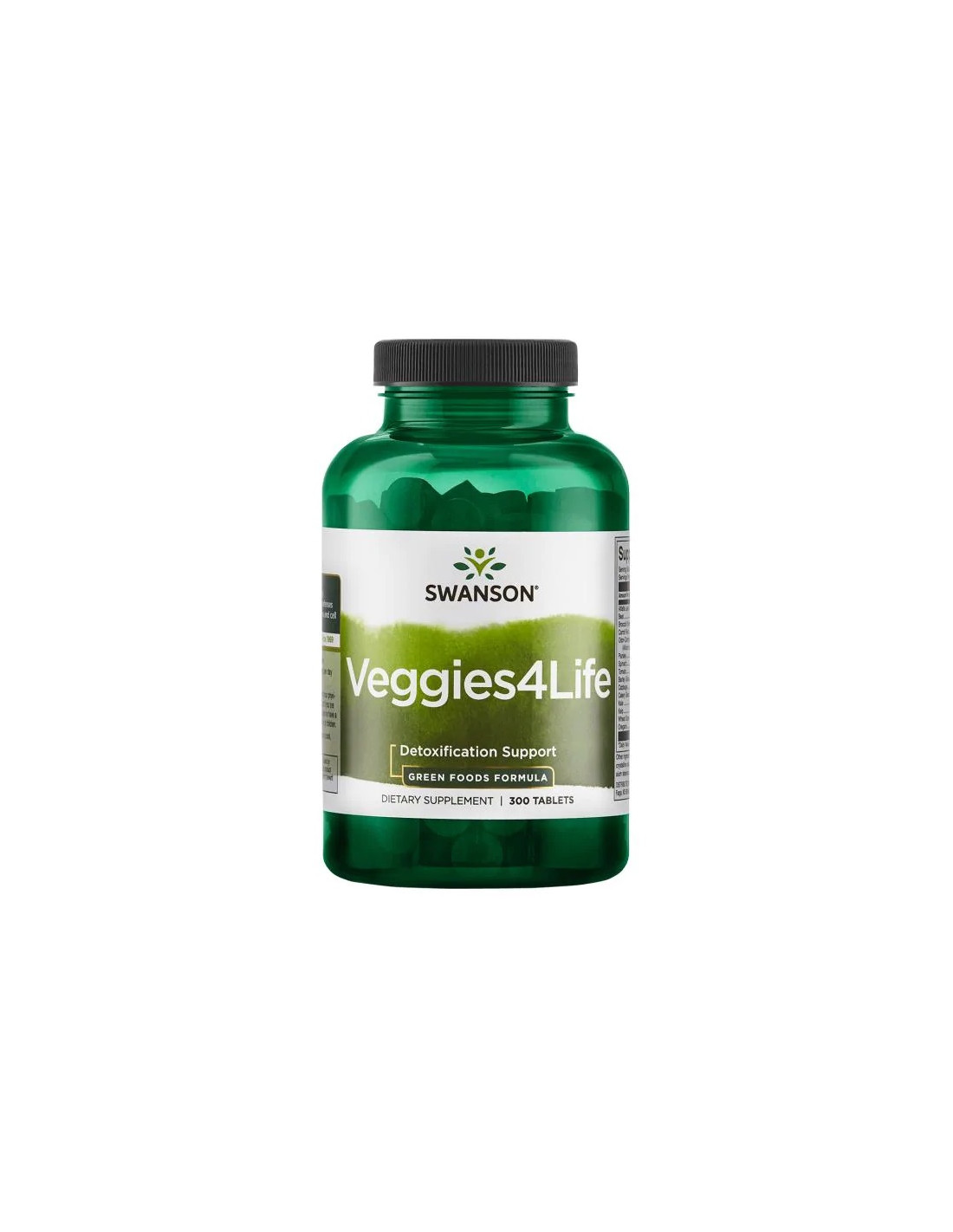 Swanson GreenFoods Formulas Veggies4Life contains a broad blend of vegetable, herb and grass powders, including leafy greens, root vegetables and algae-derived ingredients. The formulation is supplied in tablet form and delivers defined amounts of each plant-based component per serving.