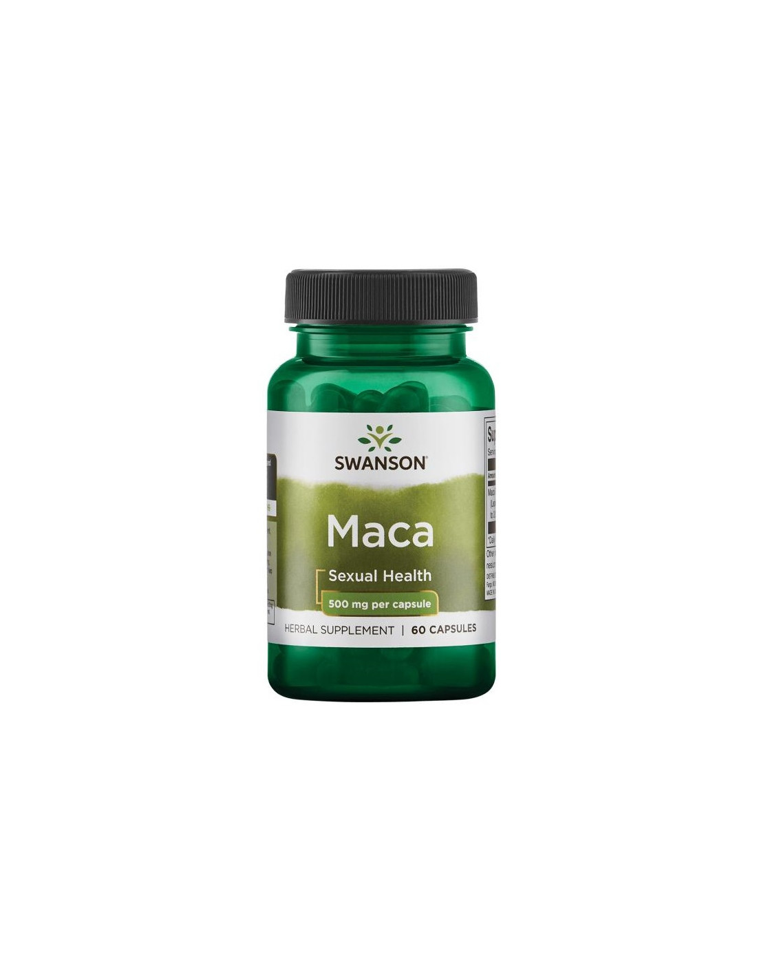 Swanson Passion Maca is a food supplement containing a 4:1 extract of maca root (Lepidium meyenii), providing a concentrated plant-based ingredient in an easy-to-use capsule format for daily intake.