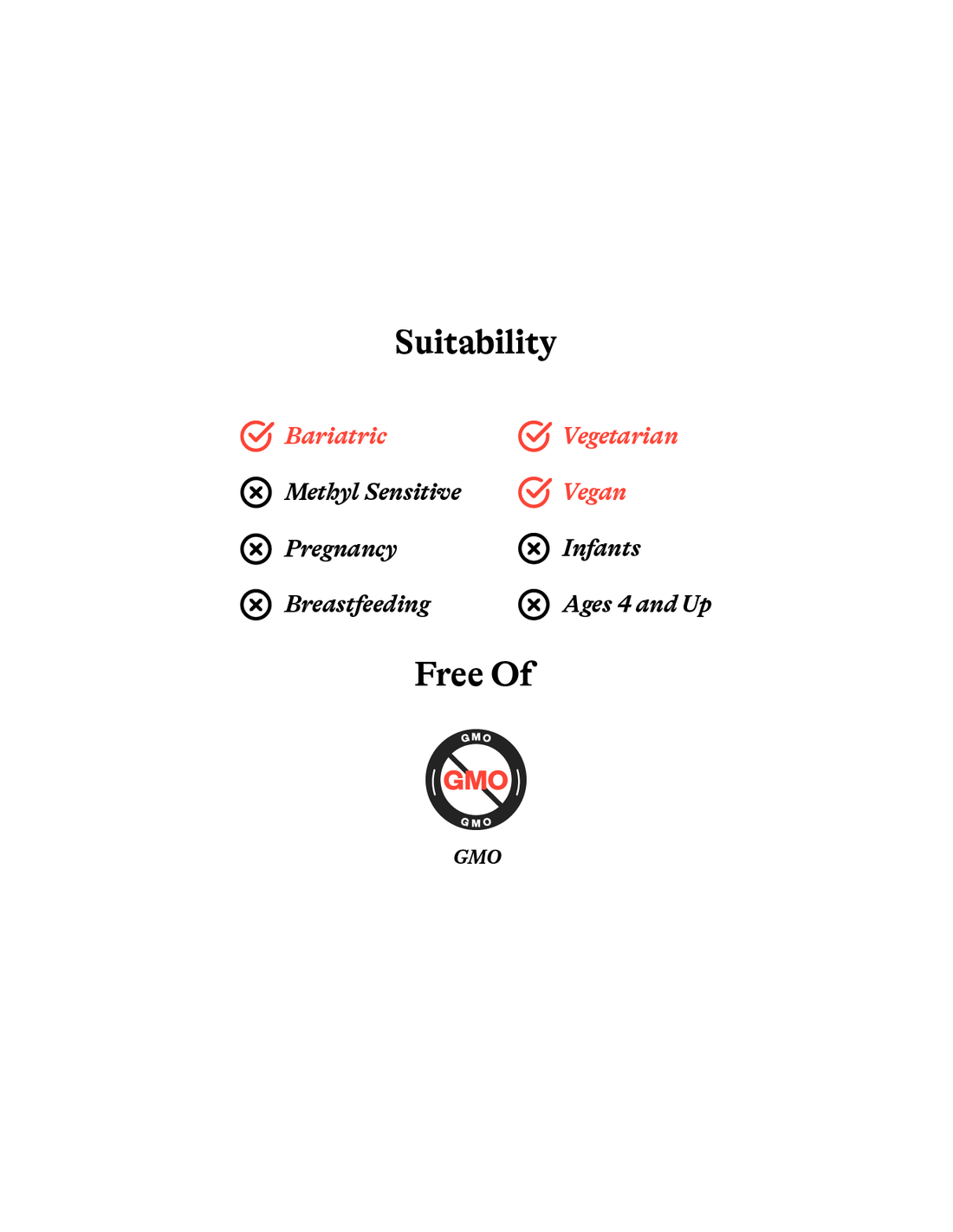Otros ingredientes: Xilitol, celulosa microcristalina, palmitato de ascorbilo, aromas naturales, ácido málico, sílice, agua purificada, L-leucina y extracto de fruta de monje orgánico.