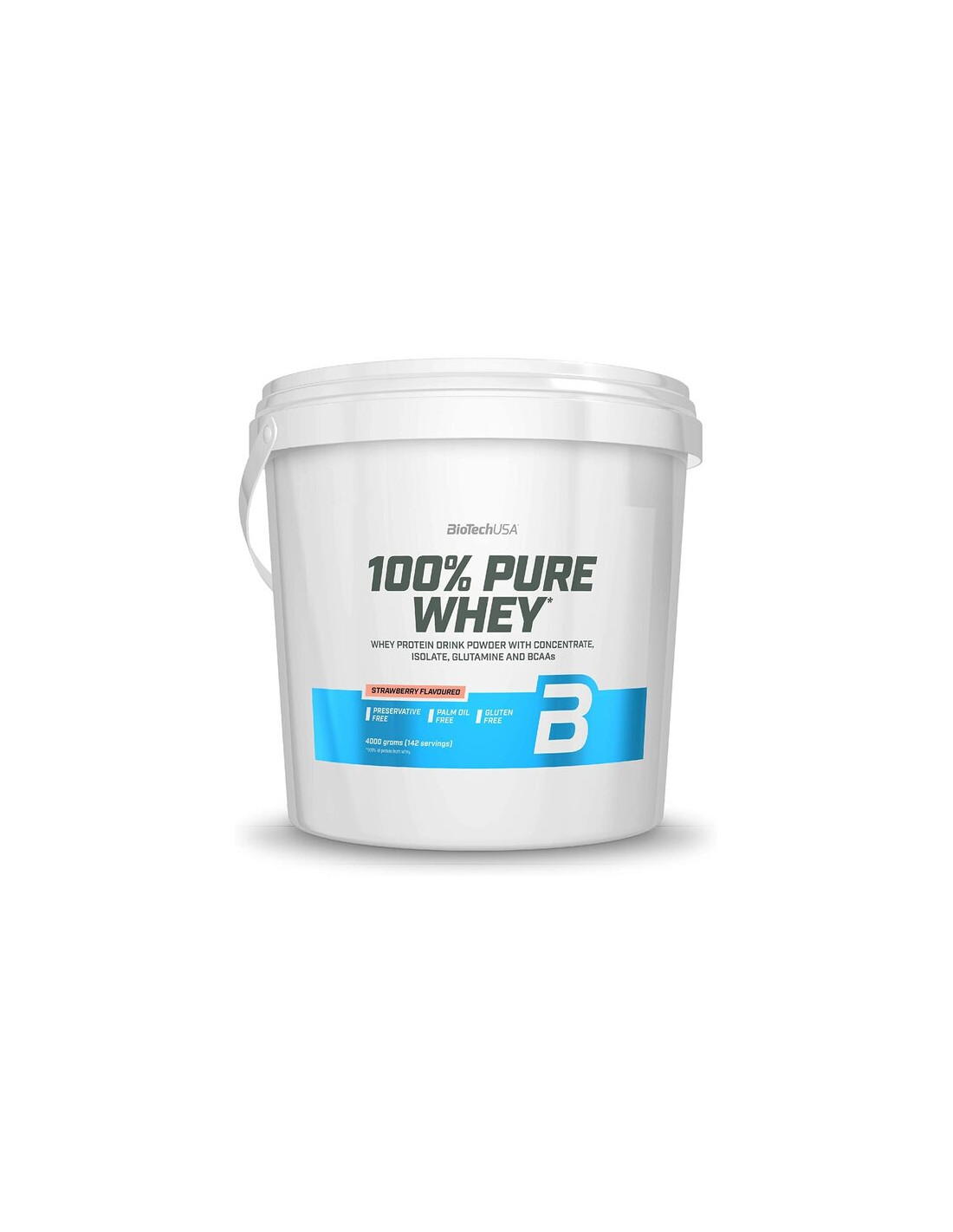 BioTechUSA 100% Pure Whey 4000 g es una bebida de proteína de suero en polvo de gran formato, baja en azúcar y sin gluten. Ideal para una ingesta regular de proteínas como parte de una dieta variada y equilibrada.
