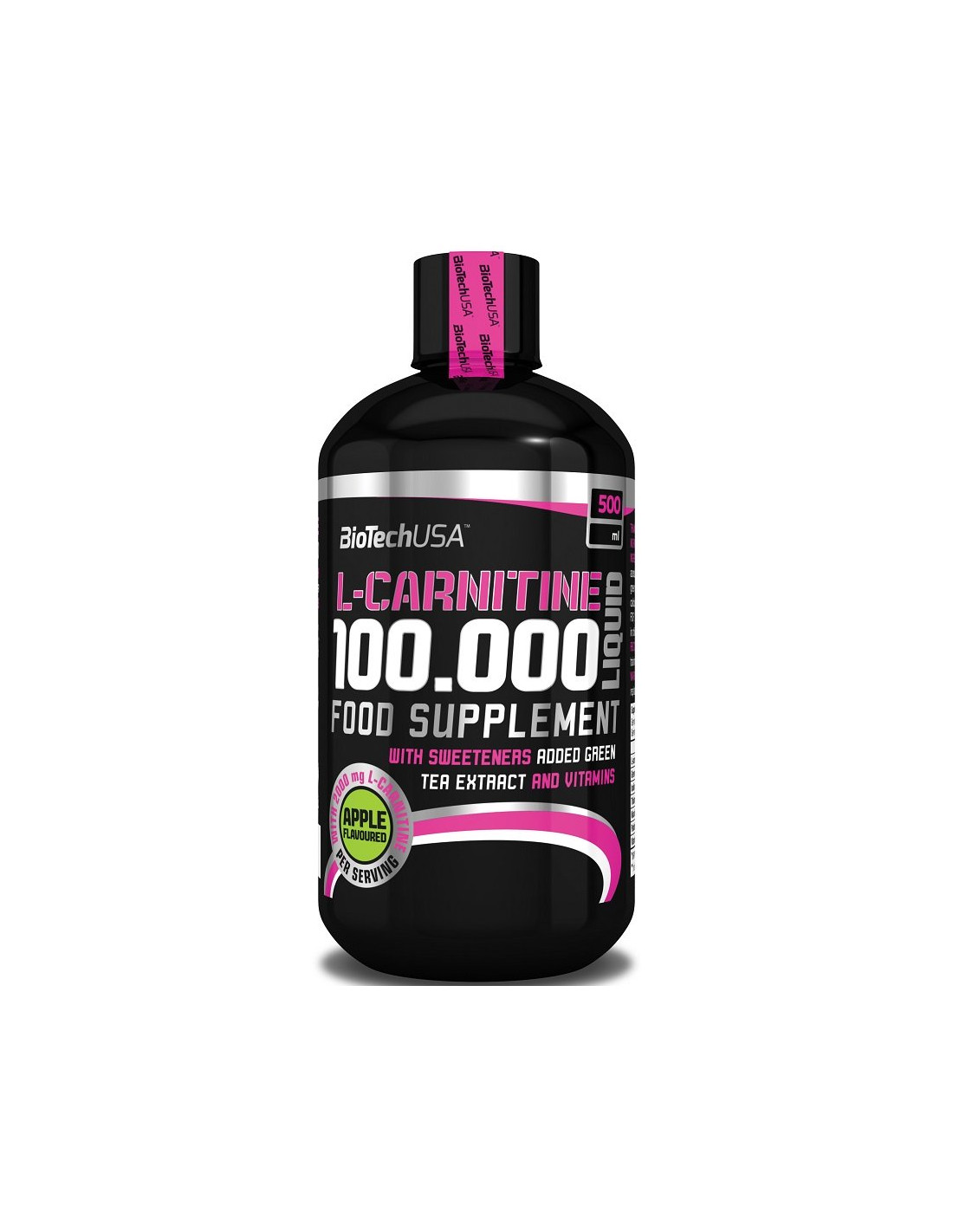L-Carnitina 100.000 – 500 ml de BioTechUSA es un complemento alimenticio líquido que contiene L-carnitina, extracto de hoja de té verde, inulina y vitaminas del grupo B. Cada dosis diaria de 10 ml aporta 2000 mg de L-carnitina junto con polifenoles del té verde y una mezcla de tiamina, niacina, ácido pantoténico y vitamina B6.