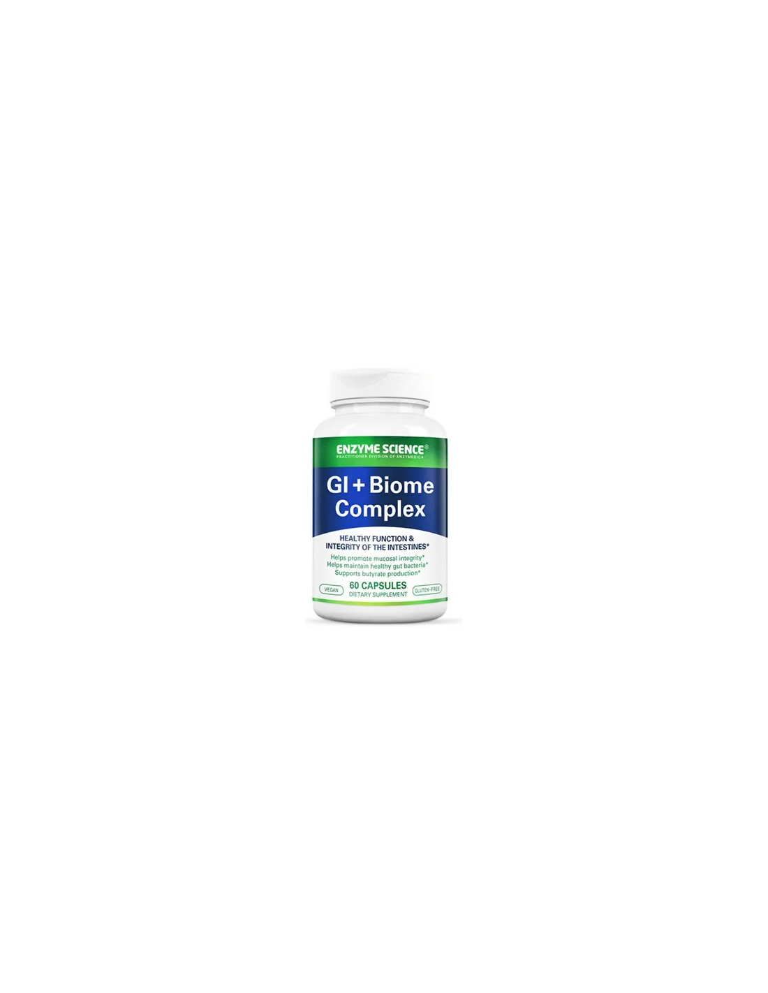 La fórmula prebiótica, enzimática y de zinc GI + Biome Complex, en 60 cápsulas vegetarianas (tamaño de porción de 2 cápsulas), combina ButyraGen® (tributirina + fibra prebiótica) científicamente estudiado, lipasa Thera-blend®, zinc-carnosina PepZinGI® y kiwi dorado orgánico (Livaux®) para promover la integridad del revestimiento intestinal, apoyar las bacterias productoras de butirato, reducir los gases ocasionales y ayudar a una motilidad digestiva saludable.*
