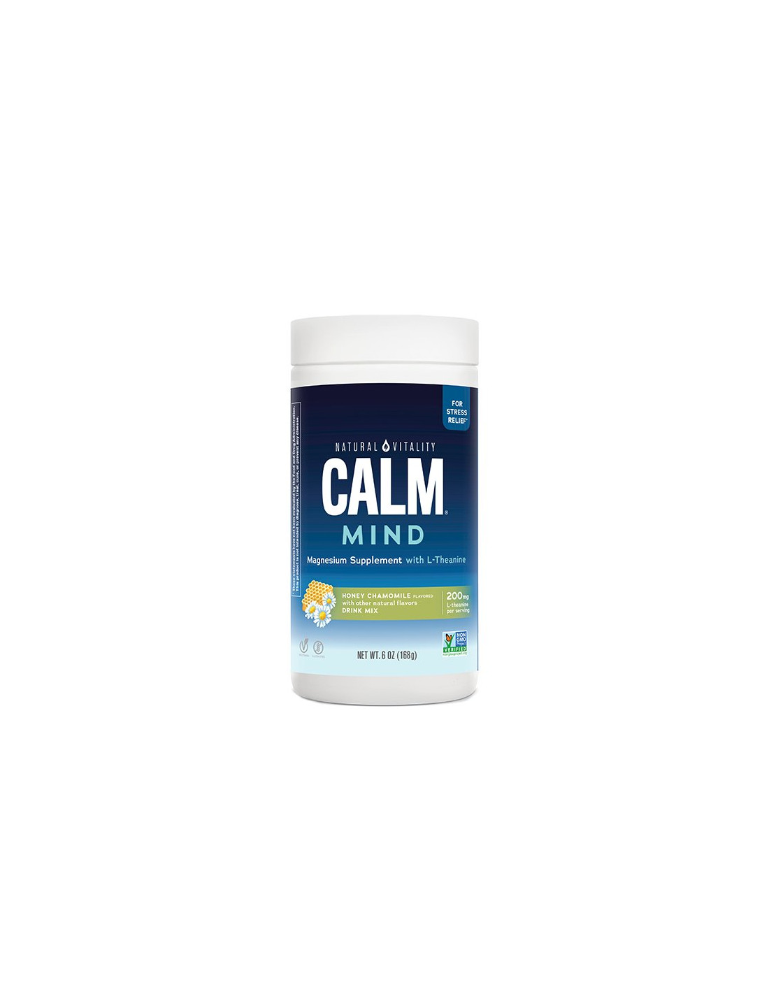 El polvo relajante Natural Vitality CALM® Mind Powder con miel y manzanilla ofrece una combinación relajante de magnesio y L-teanina. Al mezclarse con agua, el carbonato de magnesio reacciona con el ácido cítrico para formar citrato de magnesio, creando una bebida suave con sabor natural. Este producto es vegano, sin gluten y libre de azúcar, saborizantes y colorantes artificiales.